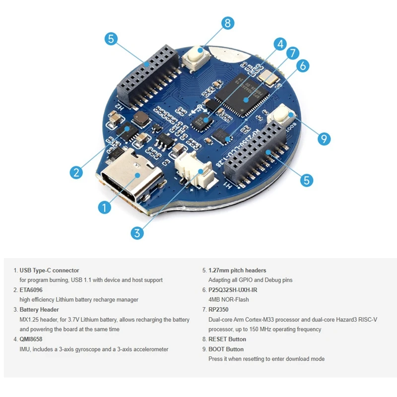 - Let this RP2350-LCD-1.28 development board impress you with its dual-core Arm M33 processor, 150 MHz max speed, and RISC-V Hazard3 core for versatile, high-performance computing tasks.