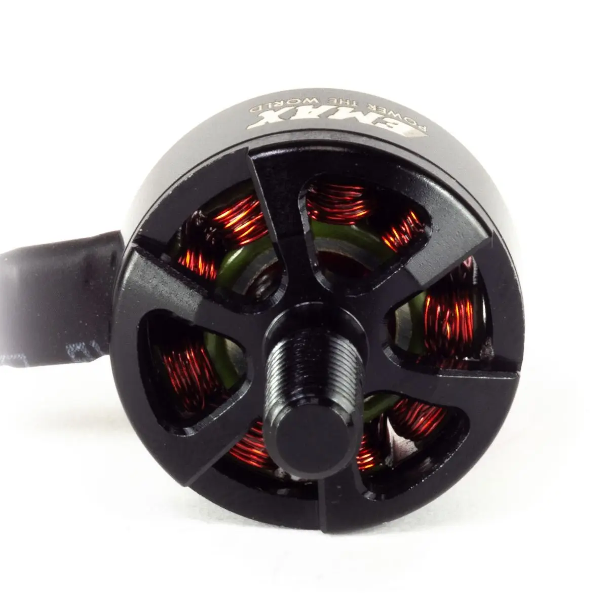 - The design includes striking red accents at the mounting flange, along with clean white inscriptions, giving it a high-tech yet minimalist aesthetic suitable for advanced drone builds.