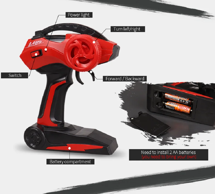 Imagine yourself gripping the remote of this powerful RC monster truck, ready to conquer any terrain. Its bold black body accented with metallic details commands attention, while the open metal frame gives it a sturdy, industrial look. Large, knobby rubber tires with deep treads ensure maximum traction on ground, grass, or sand. The intricate LED lights add a thrilling touch, illuminating your adventures. With a sleek, aggressive design, this truck embodies durability and high-performance capability. Its compact size and rugged aesthetics make it perfect for outdoor off-road fun, where you can feel confident in tackling rough terrains. Whether you're racing or just cruising, this model offers a realistic, adrenaline-pumping experience that elevates your hobby to new heights.