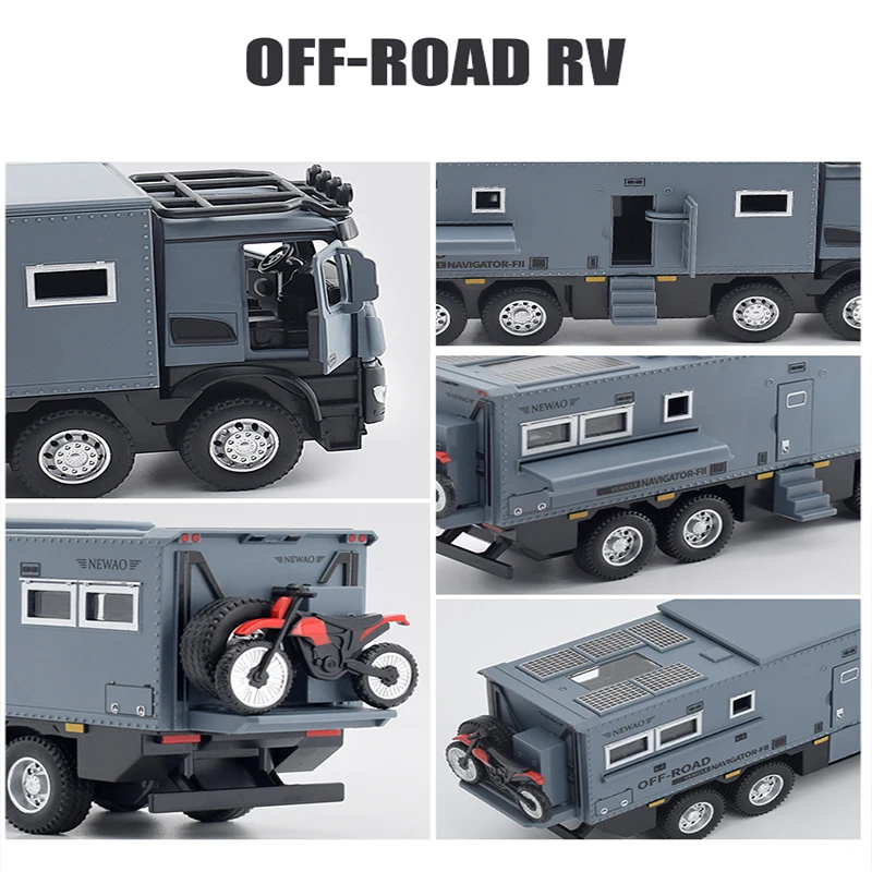 - The enclosed cargo section has tiny windows, silver access panels, and functional trims, perfect for showcasing off-road and adventure themes.