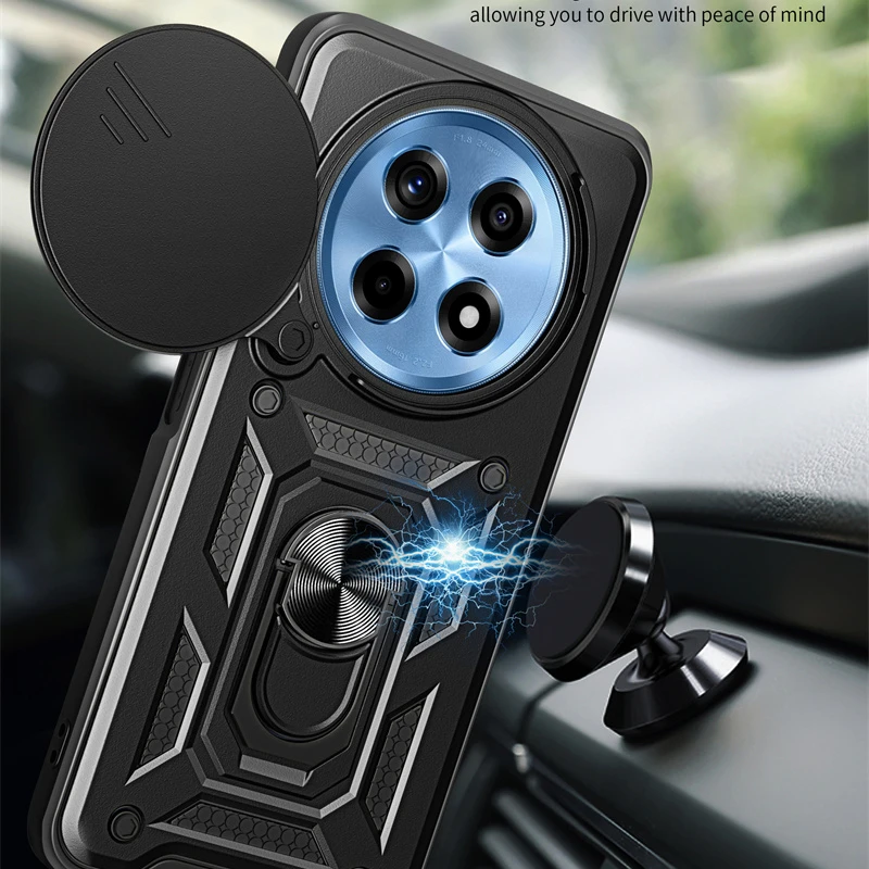 Experience ultimate protection with this rugged Armor Case designed specifically for OnePlus 12, 11, 11R, and 12R. Its dual-layer construction combines high-quality rubber and hard plastic to deliver shockproof resilience, guarding your device from drops, bumps, and scratches. The textured, web-like pattern on the back enhances grip and facilitates heat dissipation, keeping your phone cool during intensive use. A built-in metal plate allows quick attachment to magnetic car mounts, ensuring secure mounting without complex setup. The foldable aluminum alloy finger ring provides a comfortable grip, prevents slips, and functions as a versatile stand for hands-free media viewing. With precise cutouts, raised screens, and corner buffers, this case merges durability with refined style, making it perfect for everyday adventures.