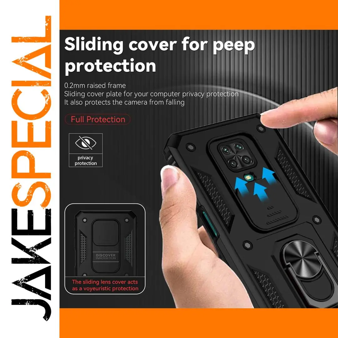 Protect your Xiaomi Redmi Note 9S, Redmi Note 9 Pro, or Redmi Note 9 Pro Max with this robust, multifunctional case. Its sleek design combines practical features such as a sliding camera cover, kickstand, and anti-slip grips, ensuring your phone remains safe without sacrificing style. Whether you want shielding from shocks, dust, or fingerprints, this case has you covered. Upgrade your device's protection today and enjoy peace of mind, knowing your phone is guarded by a high-quality, full-coverage armor that looks great and performs under pressure.