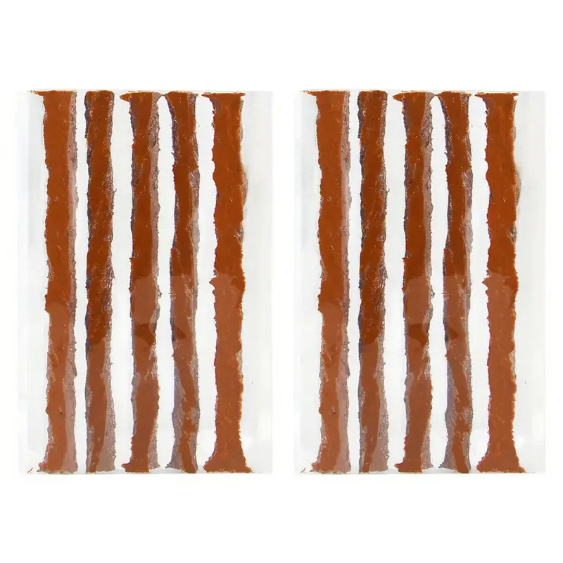 Imagine having the perfect solution to patch tubeless tires quickly and reliably. These natural rubber repair strips, with their earthy brown hue, bring durability and flexibility to your toolkit. Crafted from vulcanized natural and butyl rubber, each strip measures 100mm by 6mm, lightweight at 16g, and designed to withstand wear and tear. Their textured, fibrous surface emphasizes resilience, while their firm structure with nine strands and sixteen nylon cores guarantees maximum toughness. Whether for car, motorcycle, or bike tires, these strips fit seamlessly and stay securely in place after heated vulcanization. They're your go-to for professional repair or roadside emergencies, providing peace of mind and operational efficiency.