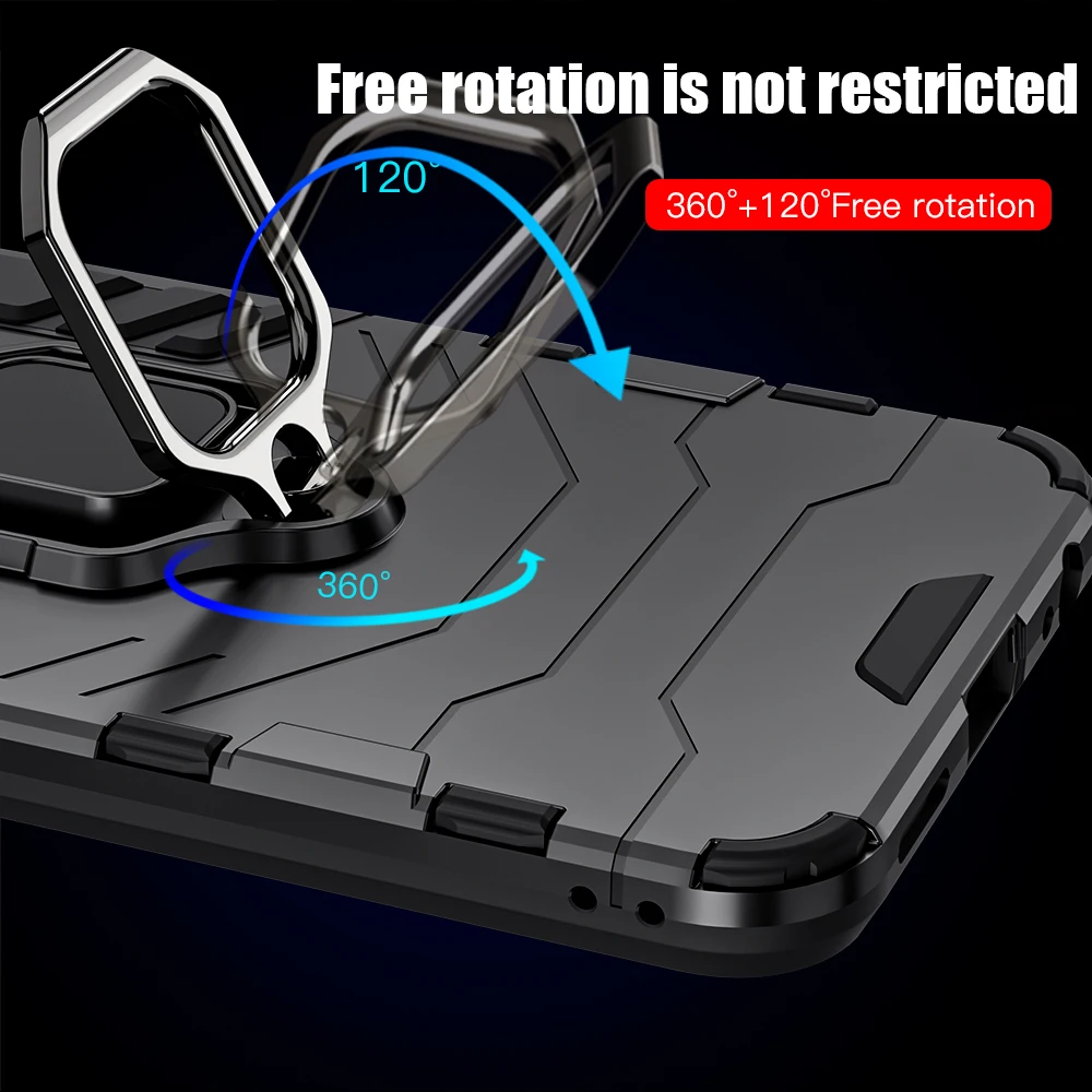- Features a shiny metallic ring stand positioned centrally on the back, enabling you to grip your phone securely and use it as a stand for hands-free viewing sessions.