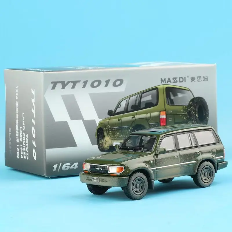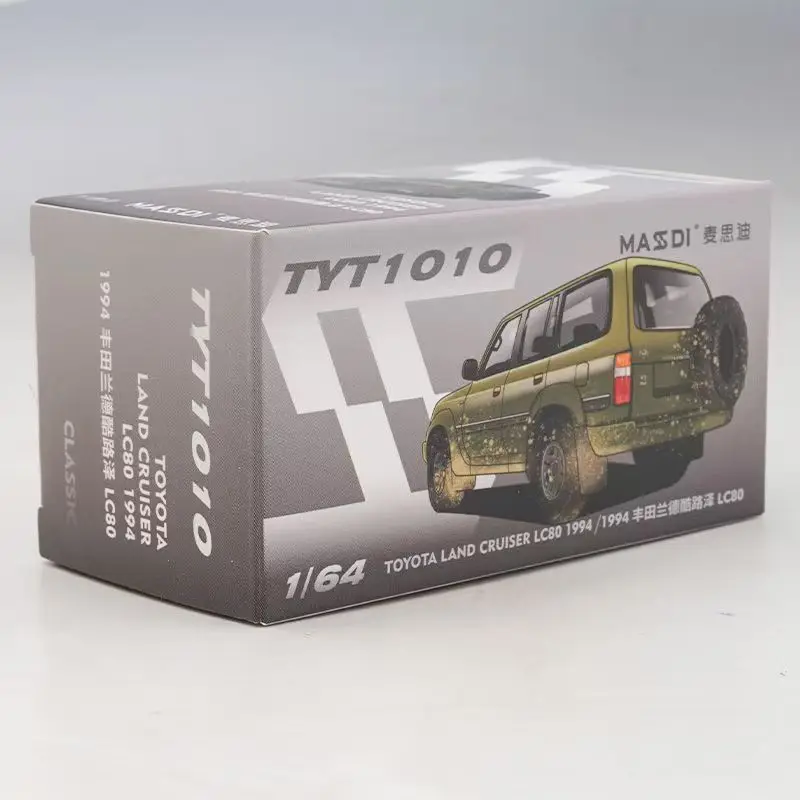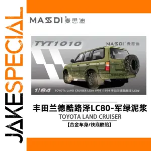 Imagine owning a piece of off-road adventure with this detailed MASDI 1:64 Toyota LC80 Land Cruiser. Crafted from durable alloy, this miniature model measures approximately 7 centimeters, perfectly capturing the rugged, utilitarian style of the 1994 Land Cruiser. Its military green or olive drab body color, combined with decal effects resembling mud splatters, enhances its realistic, outdoor-ready appearance. Every detail, including windows, door panels, side mirrors, and a rear-mounted spare tire, is proportionally scaled to evoke the authentic vehicle. The high-quality die-cast construction and matte finish make it an attractive collectible ornament. Whether displayed in a collection or used as a display piece for outdoor enthusiasts, this model exudes steadfast durability and detailed realism, inviting you to bring adventure into your space.