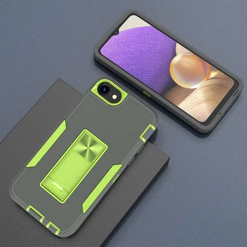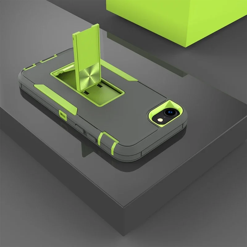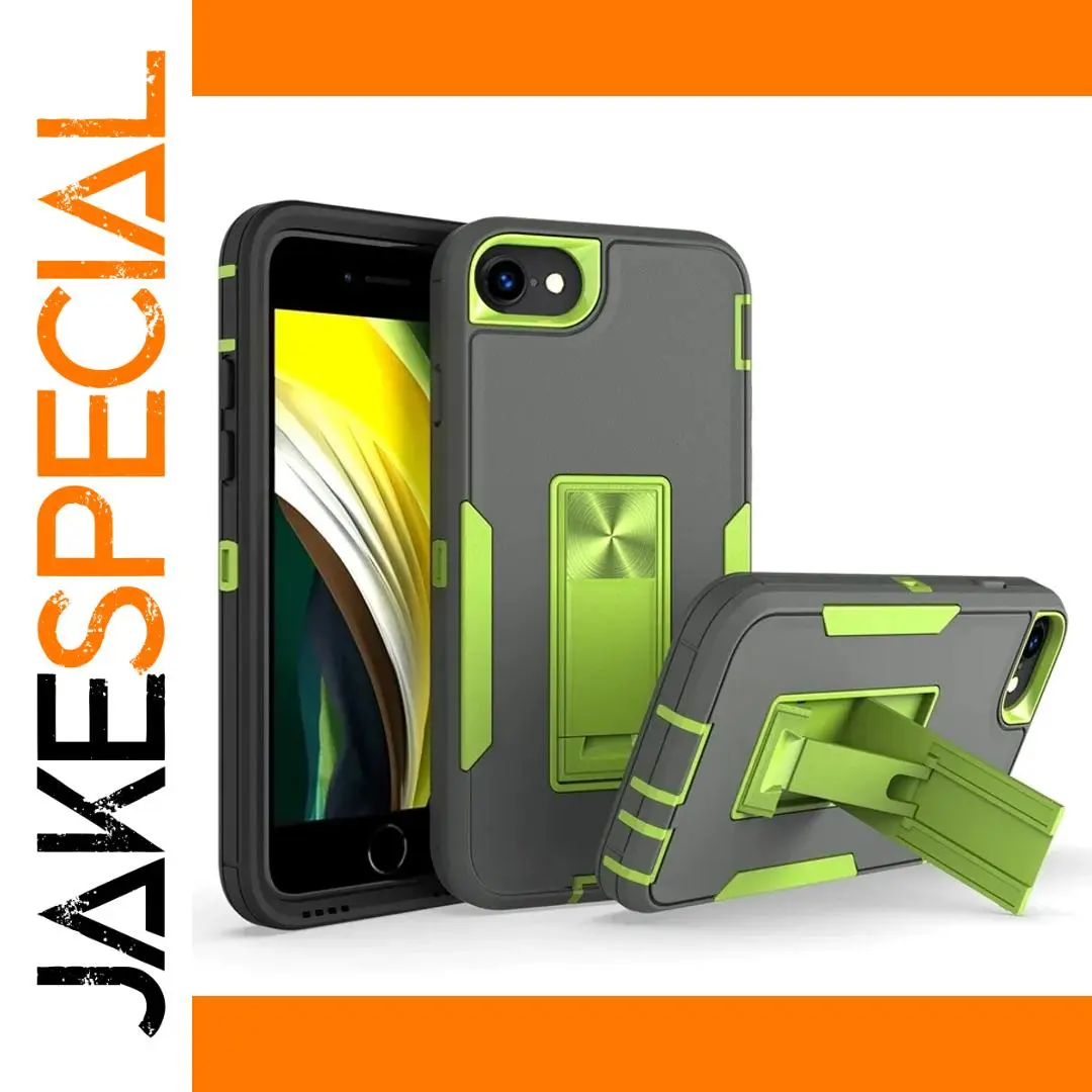 Experience the perfect blend of style and durability with this rugged protective case designed specifically for iPhone SE (2020 and 2022). Its dual-tone color scheme featuring a sleek matte gray finish contrasted by vibrant green accents creates a sporty, modern look. The textured surface provides a secure, non-slip grip, while the reinforced green bumper edges offer superior shock absorption. The built-in rectangular kickstand, with a metallic sheen, allows you to enjoy hands-free viewing comfortably. The case’s precise cutouts ensure easy access to all ports and buttons, adding to its functional appeal. Whether for daily use or rugged outdoor adventures, this case provides a reliable shield against impacts, scratches, and dust, ensuring your iPhone stays protected and looking great over time.