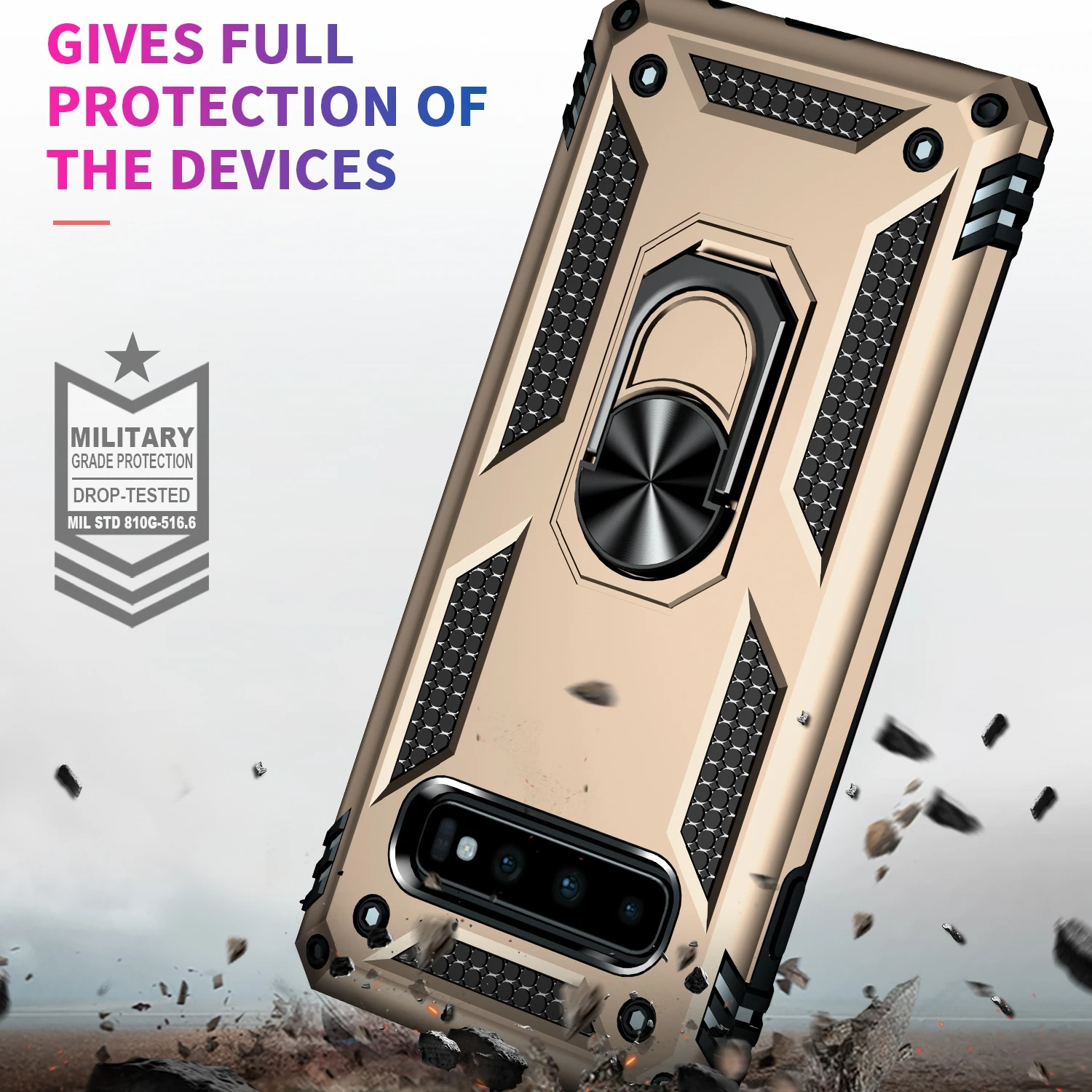 Experience the perfect blend of durability and practicality with this rugged military-grade protection cover designed specifically for Samsung Galaxy models. Featuring a sturdy plastic bumper, this case offers excellent shock absorption while maintaining a sleek, utilitarian look. The built-in circular kickstand adds to its functionality, making it easy to enjoy hands-free viewing on the go. Its bold combination of black, gray, red, gold, pink, or blue accents complements its protective features like anti-fingerprint, anti-scratch, dustproof, and non-slip surfaces. Crafted to withstand every day’s challenges, this case boosts your device’s safety and ensures a comfortable grip, empowering you to stay connected confidently in any environment. Turn your phone into a tough, reliable companion today.