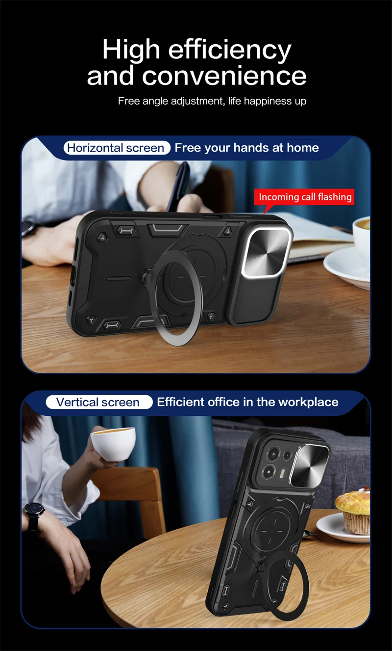 - Built-in 360-degree alloy ring stand doubles as a stand and grip, ideal for comfortable viewing and hands-free usage at any angle.