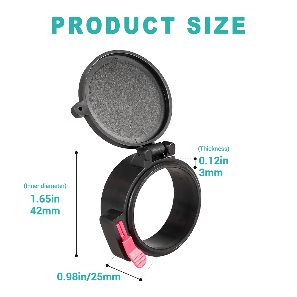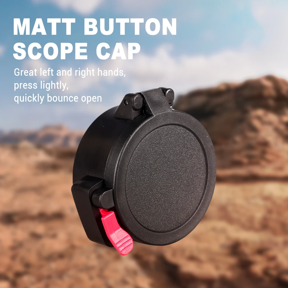 Experience unmatched protection and quick access with this high-quality rifle scope lens cover. Designed for diameters ranging from 39.4mm to 48mm, it offers a sleek, minimalist aesthetic with a matte black finish that blends seamlessly with tactical gear. The spherical, hinged design ensures easy flip-up action, allowing you to acquire targets swiftly and silently in critical moments. Crafted from durable ABS and rubber materials, this cover guarantees longevity and resistance to harsh conditions. Its innovative one-touch, spring-loaded mechanism provides a noiseless operation, ideal for stealth missions or hunting. The secure locking system prevents accidental openings, keeping your lens safe from dust, scratches, or damage. Perfect for shooters demanding reliability and style in the field or range.