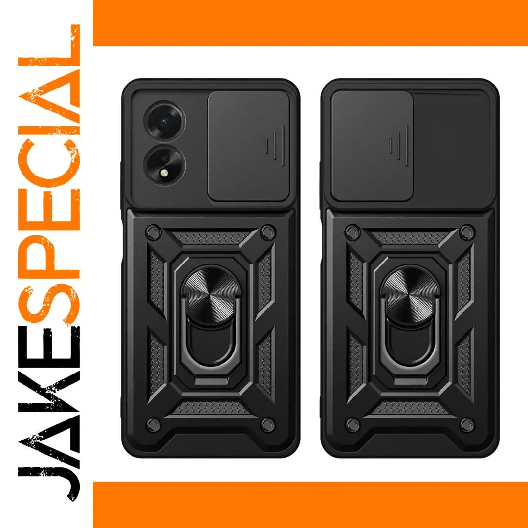 Experience ultimate protection and modern style with this rugged shockproof armor case designed specifically for OPPO A78 4G, A38 4G, and A58 4G models. Crafted with a dual-layer construction of heavy-duty plastic, it offers comprehensive coverage, safeguarding your device against shocks, scratches, and fingerprints. The textured matte black finish highlights a tactical, street-ready aesthetic complemented by angular geometric patterns, emphasizing durability and an aggressive look. Features such as reinforced rims around the camera cutouts, a built-in rotating ring holder, and a kickstand enhance functionality. Available in several colors including black, gold, green, blue, rose gold, red, and silver, this case ensures your phone stays protected while making a bold statement.