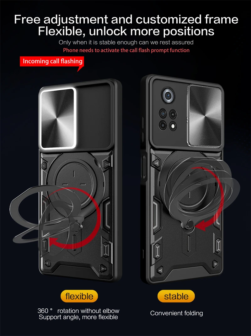 Feel confident knowing your device is safeguarded by this rugged, stylish Xiaomi Poco X4 Pro 5G case. Whether you’re commuting, working, or exploring outdoors, its shockproof and dustproof properties keep your phone safe. The functional kickstand and ring holder support active lifestyles, offering hands-free convenience and versatile mounting options. Choose the color that best suits your personality and enjoy a durable, anti-slip grip every day. Invest in your phone’s security and style today—this case is designed to meet your needs and exceed expectations, making it the perfect companion for your Xiaomi Poco X4 Pro 5G.