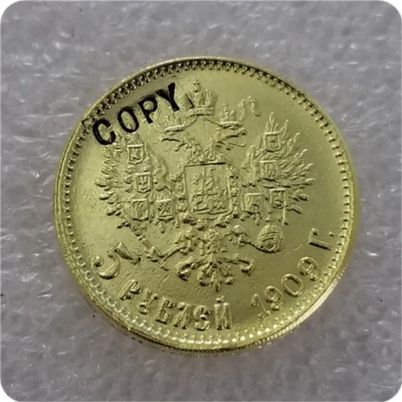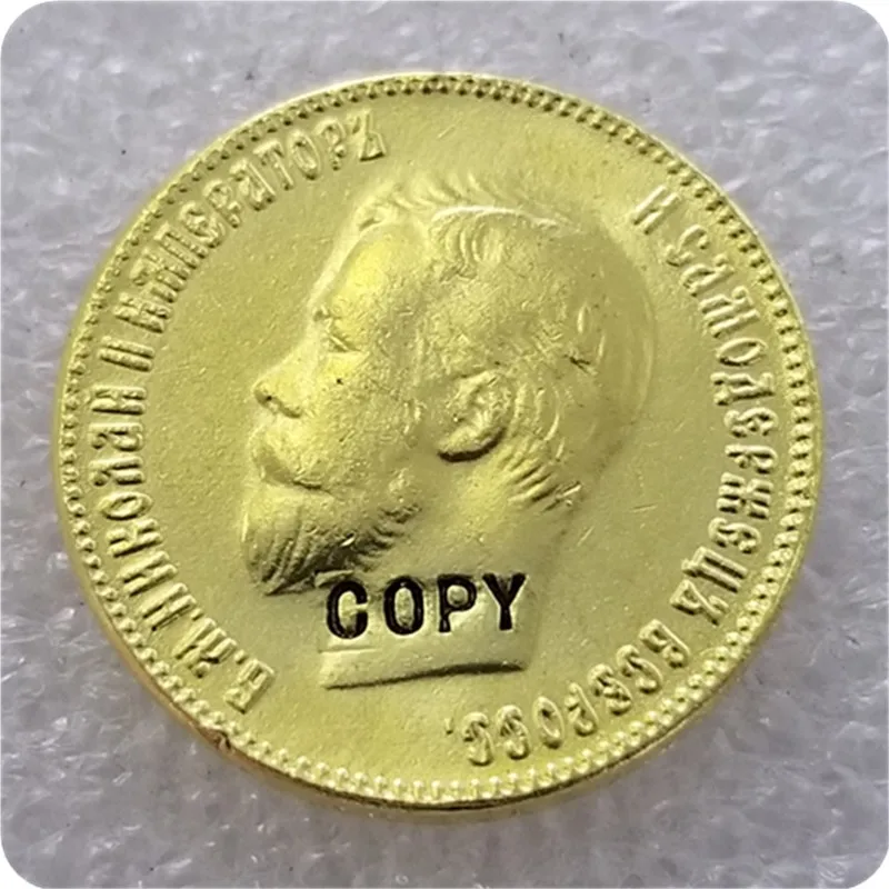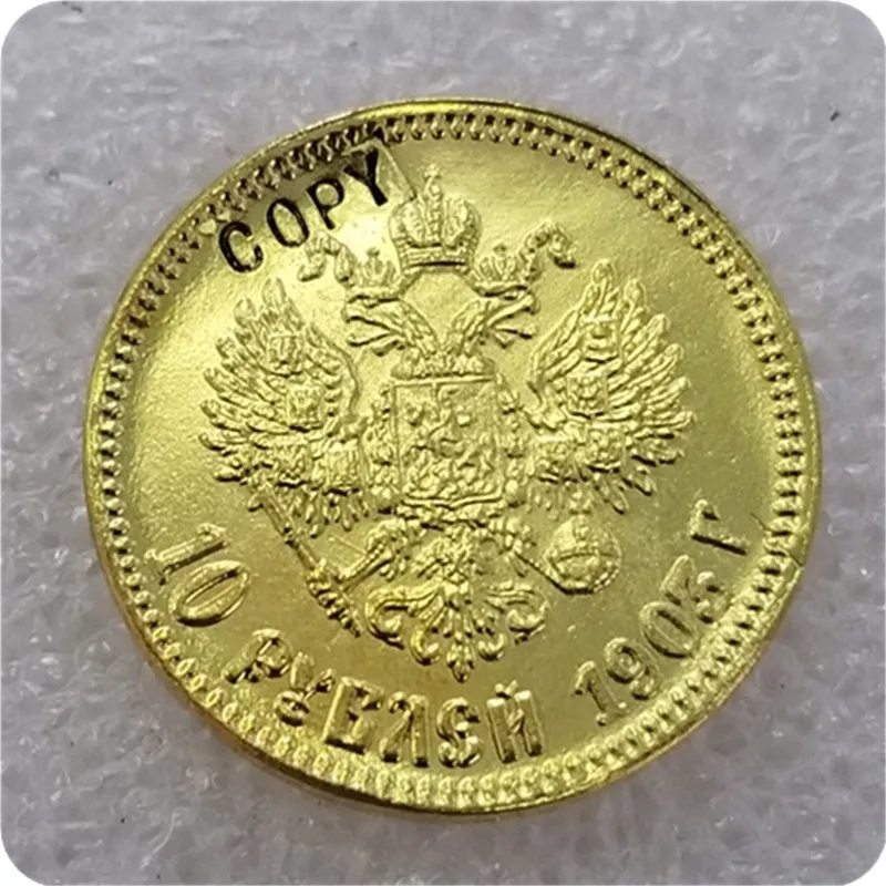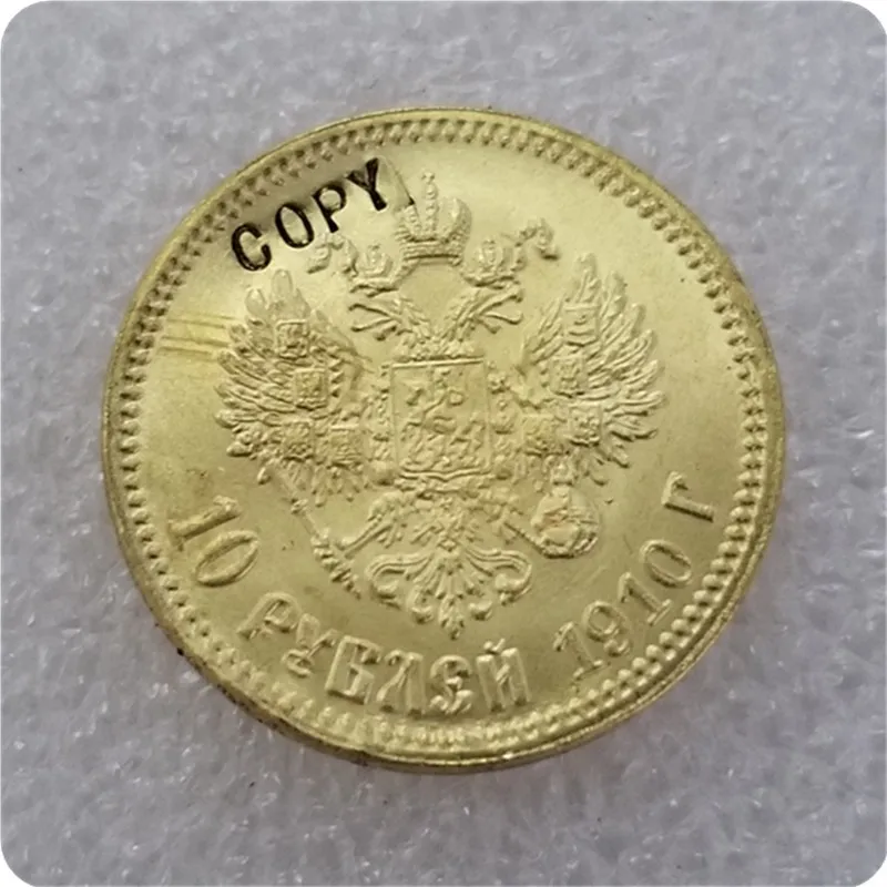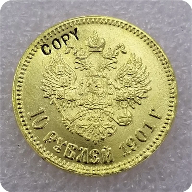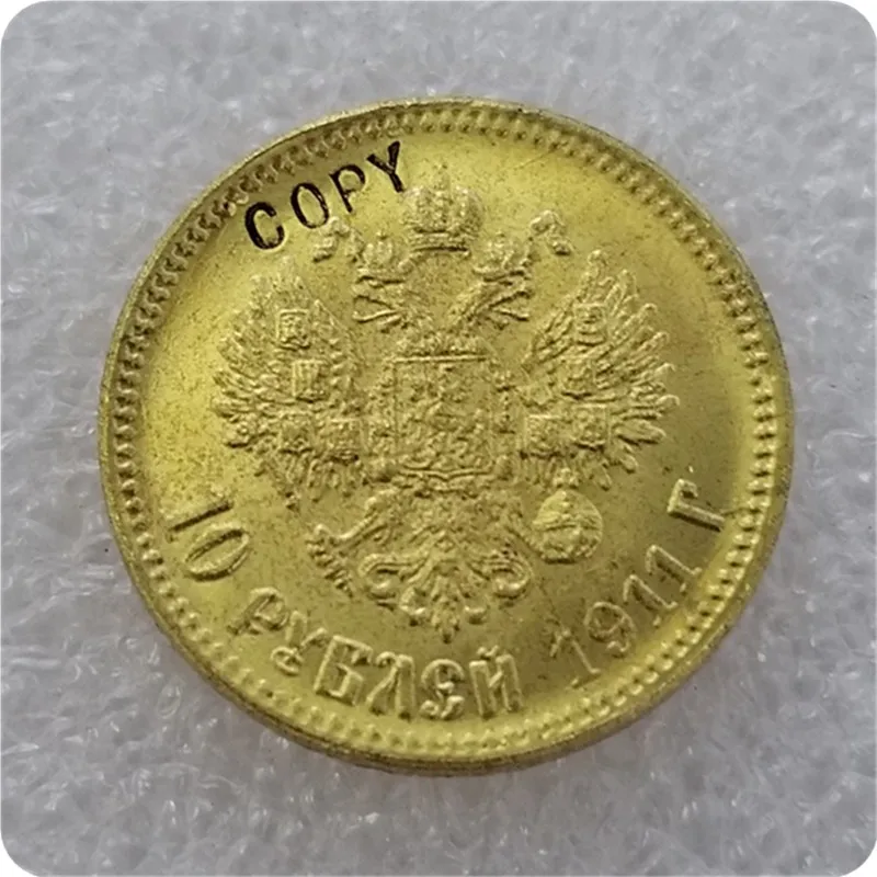 This beautifully crafted replica of the 10 Rouble from Russia, dating from 1898 to 1911, features intricate casting and detailed embossing, including a double-headed eagle emblem at the center, surrounded by fine patterns and ridged edges. Made from durable metal with a shiny, gold-like finish, each piece captures the historical essence of Czar Nicholas II’s era. Available in colors corresponding to different years such as 1898, 1899, 1900, and others, this collectible showcases authentic antique design, making it an ideal display piece, conversation starter, or thoughtful gift for numismatic enthusiasts and collectors alike.