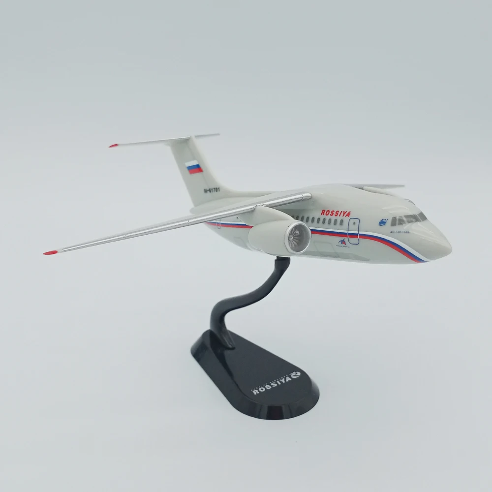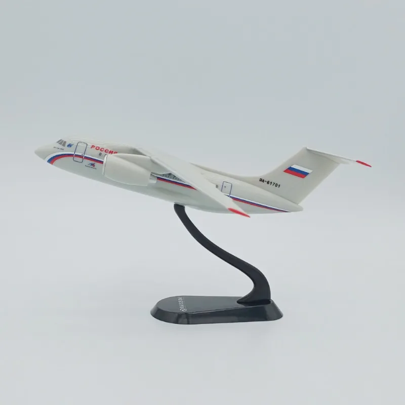 Step into the world of aviation collection with this beautifully crafted 1/200 scale Russian An-148 diecast model by WELLY. Crafted from durable ABS plastic and metal, this detailed replica captures the sleek, aerodynamic design of the real aircraft with striking accuracy. Its glossy white finish, complemented by vivid red accents on the wingtips, nose, and tail fin, showcases meticulous attention to detail. The model features painted windows, doors, and authentic markings, including a small Russian flag decal on the vertical stabilizer. Mounted on a curved black stand, it is displayed at an angle that emphasizes its aerodynamic elegance. Perfect for collectors or aviation enthusiasts, this model elevates any space with its craftsmanship and realism.