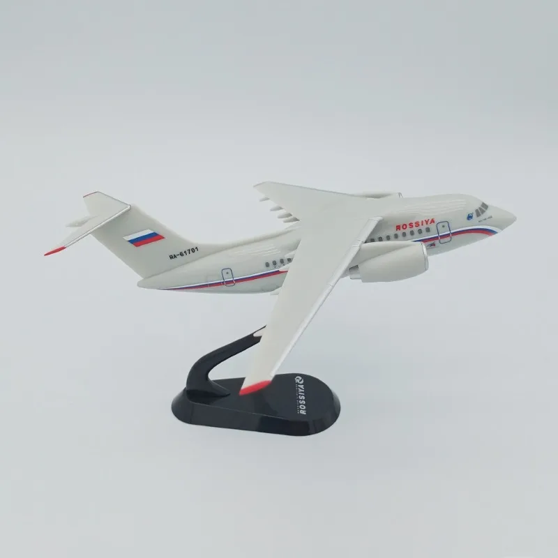 - Detailed replica of the Russian An-148 aircraft, scaled at 1:200, featuring a sleek fuselage, swept-back wings, and iconic red tips for authenticity and visual appeal.