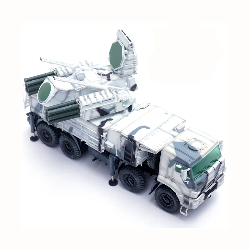 Imagine owning a stunning miniature of the Russian Arctic Armor S1 Air 96K6, meticulously crafted at a 1/72 scale. This model captures the rugged, strategic look of the real vehicle with intricate surface details, including panel lines, rivets, and textured molded elements. Its camouflage pattern in white, black, and gray hues allows it to blend seamlessly into snowy or Arctic environments. The turret is equipped with missile launchers and antenna-like structures, adding to its tactical appeal. With its rugged tires, sloped glacis plate, and precise detailing, this alloy tank model is perfect for collectors who appreciate military realism and craftsmanship. It’s a striking display piece that elevates any collection with its authenticity and striking appearance.