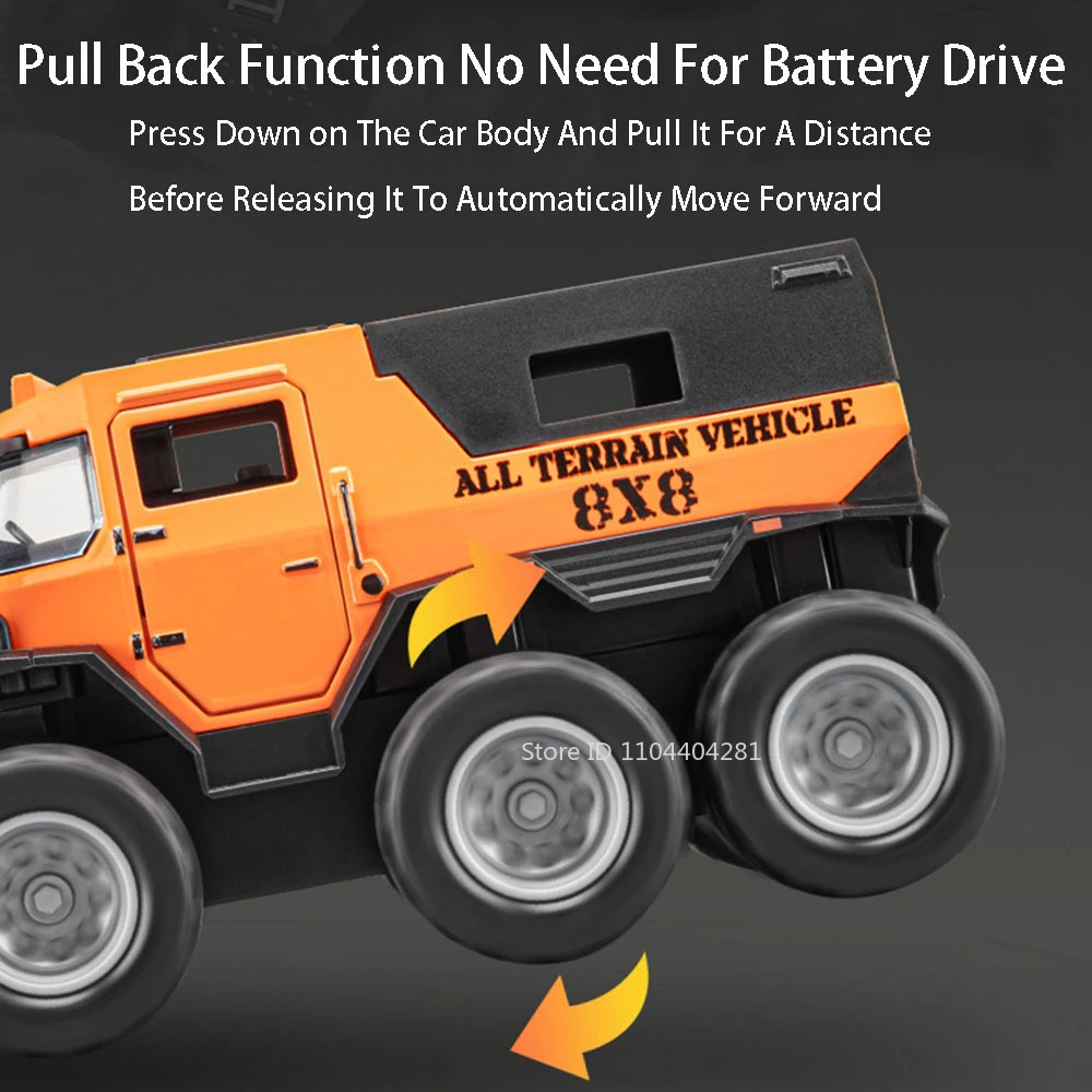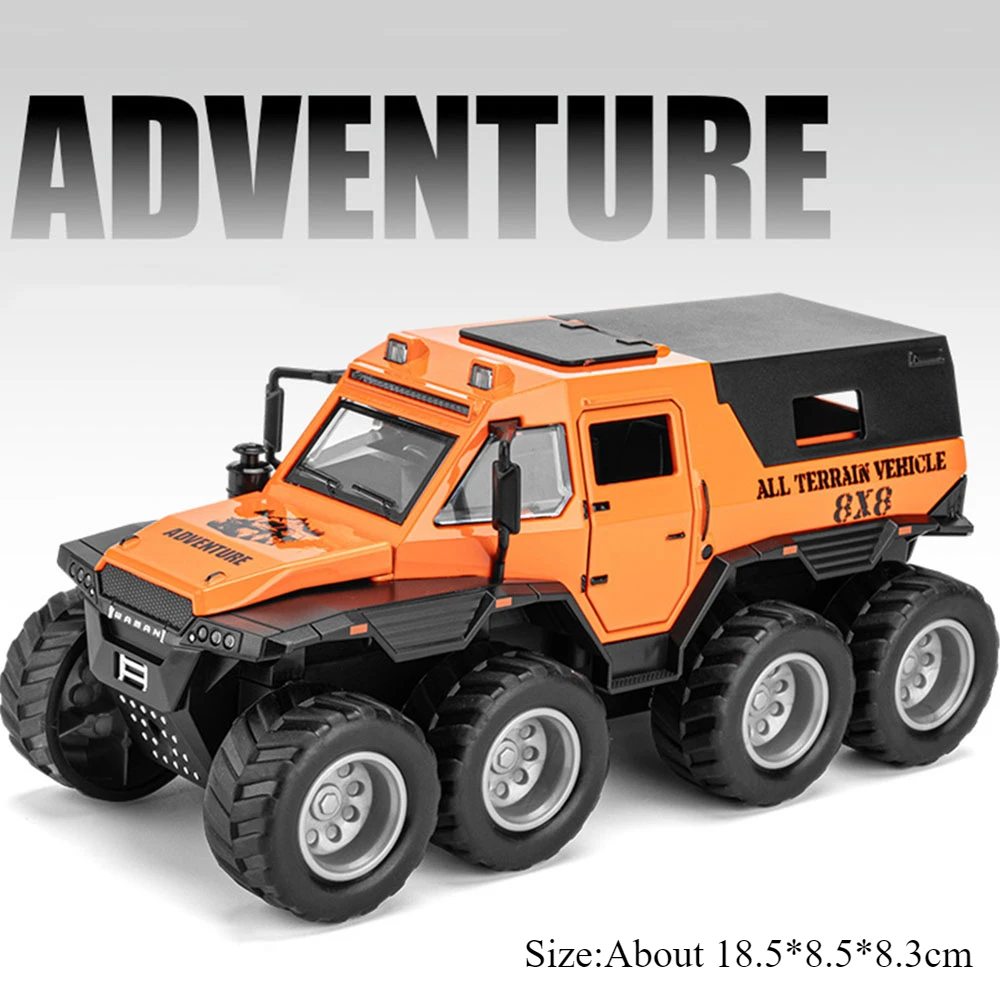 Step into the world of off-road adventure with this detailed miniature of the Russian Avtoros 8×8 ATV. Crafted with a sturdy metal body and plastic chassis, this diecast model exudes durability and realism. Its eye-catching bright orange hue—accented with black details—captures attention and ignites imagination. The large rubber tires provide an authentic off-road look, while features like openable doors and raised roof details mimic real machinery. Equipped with pull-back motion, lights, and sound effects, this model offers engaging play and collection value. Its compact size, approximately 18.5 × 8.5 × 8.3 cm, makes it an ideal gift for enthusiasts and collectors aged 14 and above. Experience the thrill of rugged terrain from the comfort of your space with this detailed miniature.