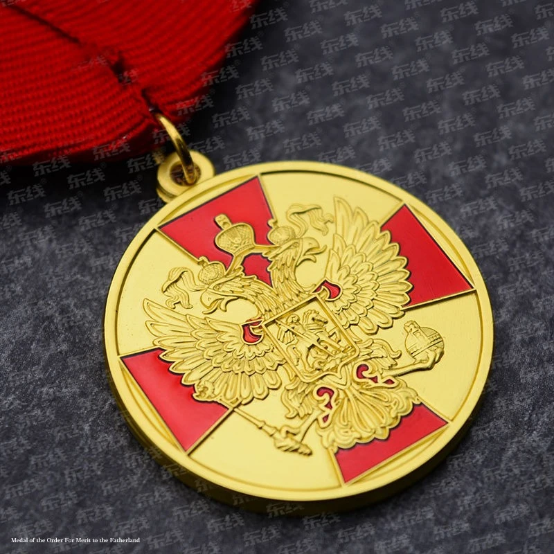 - Technical specifications include a 50mm diameter medal, 80cm long ribbon, metal composition of zinc alloy with gold plating, and a polished finish that enhances visual appeal.