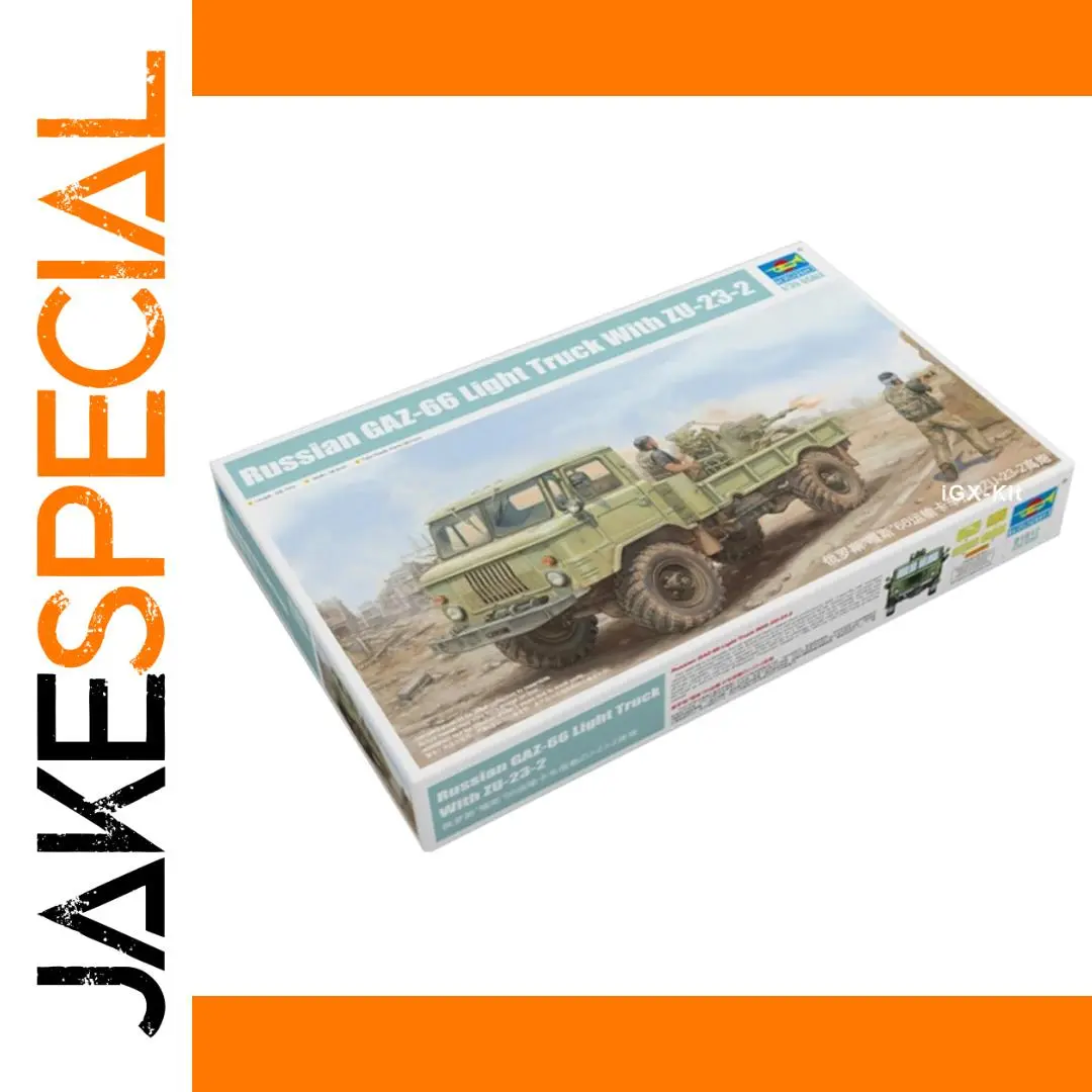 Build this detailed 1:35 scale plastic model of the Russian GAZ-66 light truck with ZU-23-2 anti-aircraft system, measuring 190.7mm in length and 38.5mm in width. Featuring over 590 parts plus 4 etched components, including a multi-directional slide-molded cab, full drivetrain with engine and suspension, and hollow rubber tires with realistic tread, this kit offers an immersive assembly experience. Crafted from durable ABS plastic, it is suitable for ages 14 and above and captures the rugged military aesthetic with precision, making it perfect for enthusiasts eager to create a highly detailed replica of this iconic off-road vehicle in a wartime environment.
