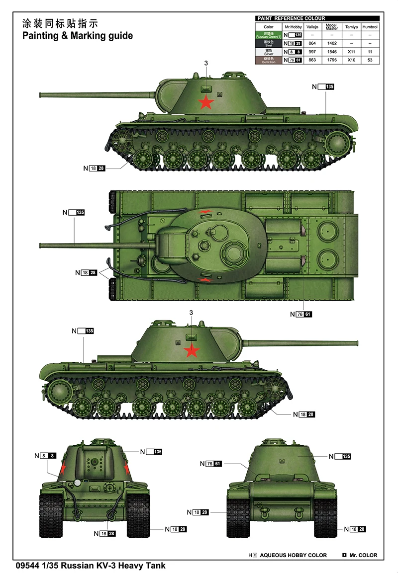 - Over 320 detailed plastic parts including copper cables add realism and authenticity to your model of the Russian KV-3 heavy tank.