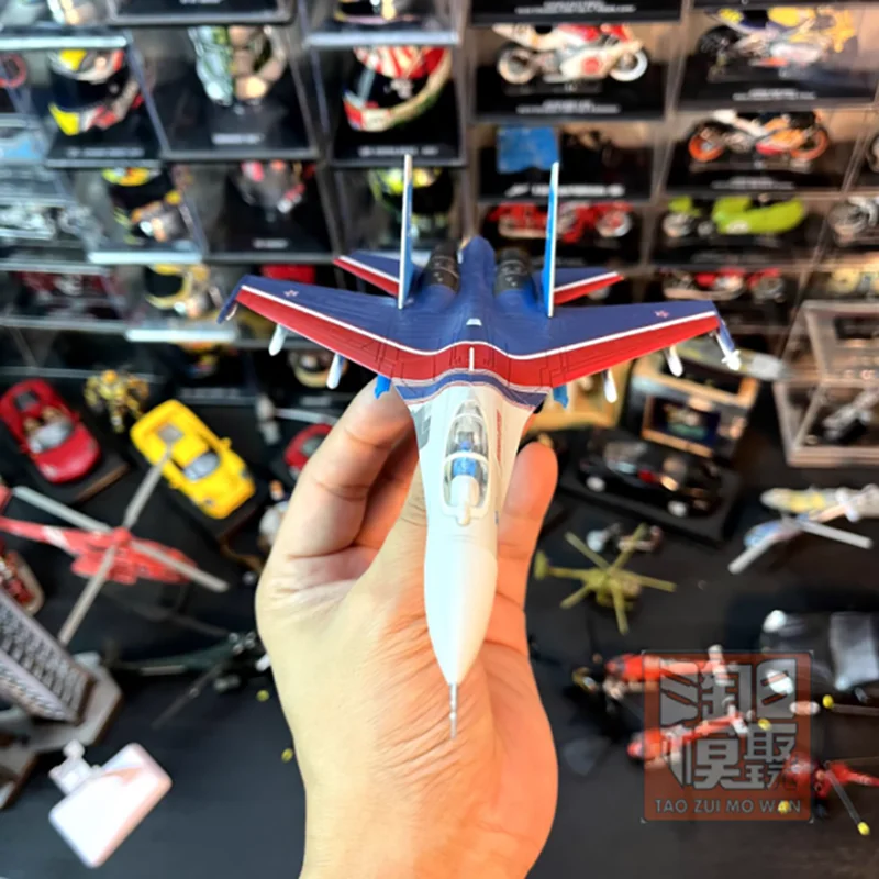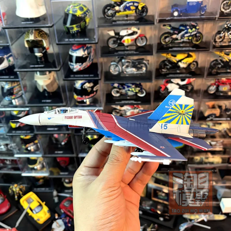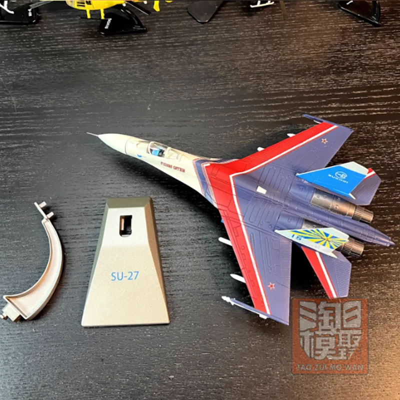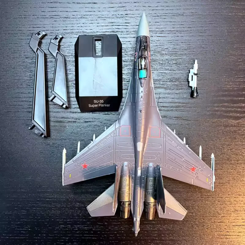 - Made from high-quality alloy and plastic, the model features a realistic finish with finely painted panel lines, sharply defined markings, and model-specific color schemes reflecting Russian military aircraft aesthetics.