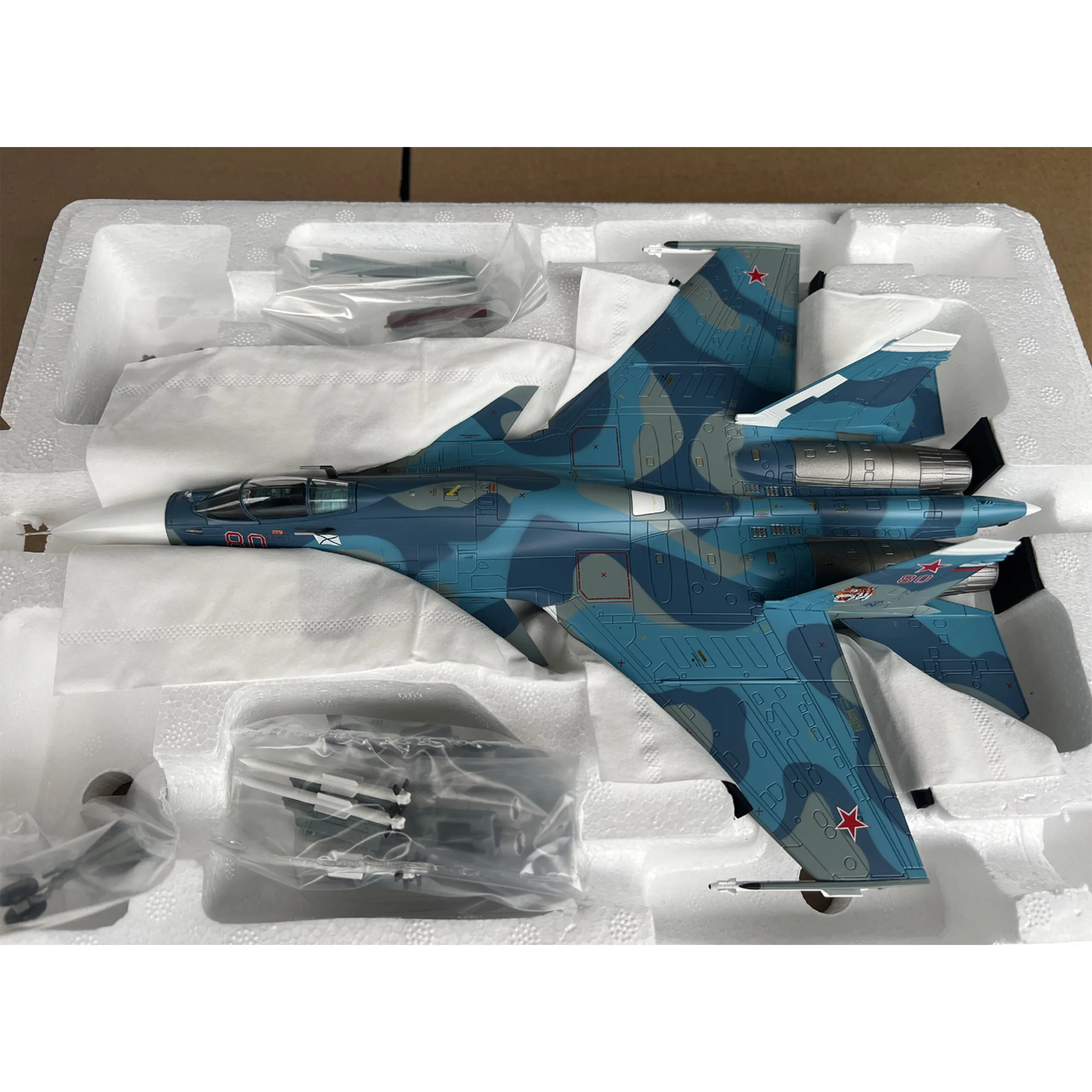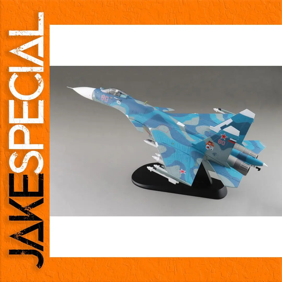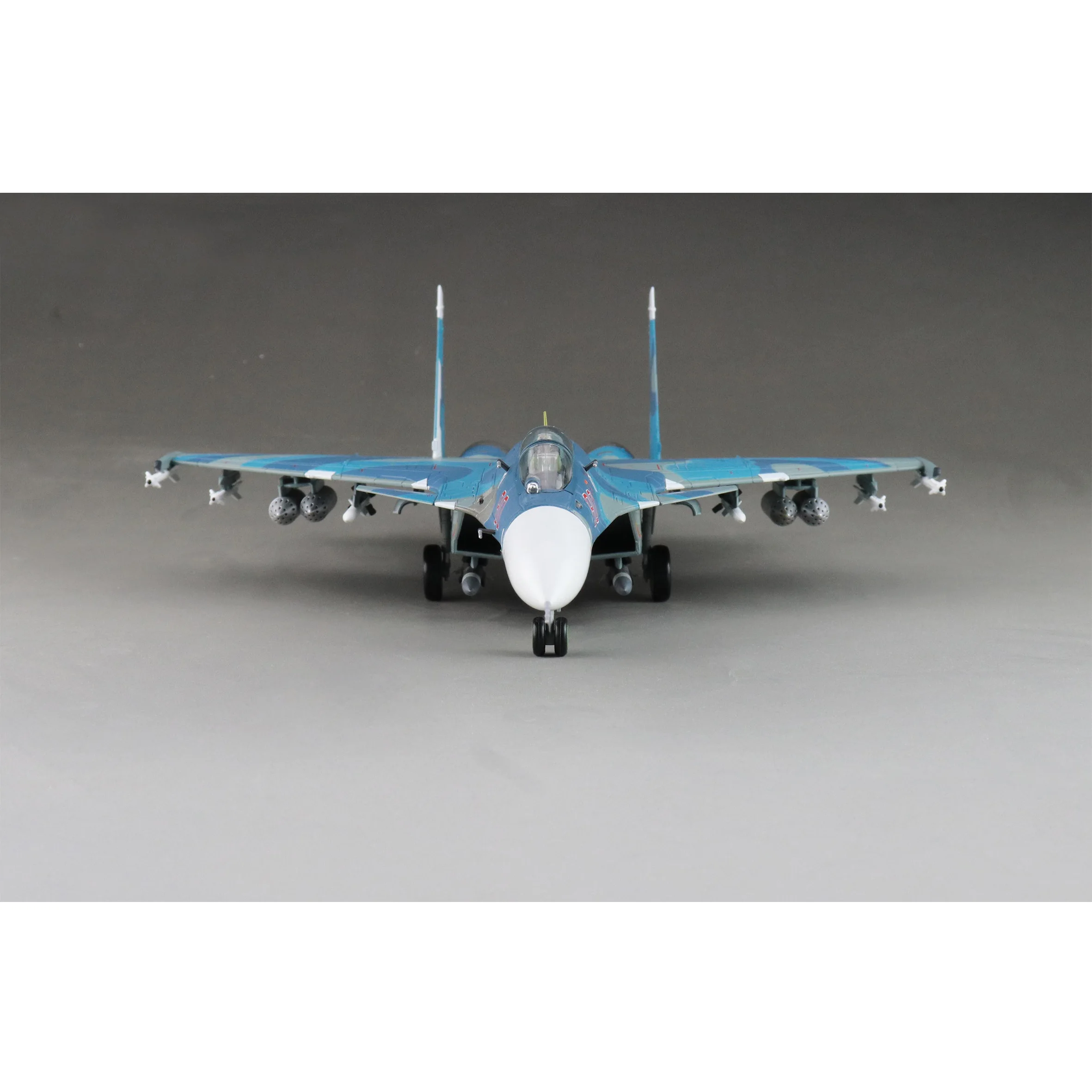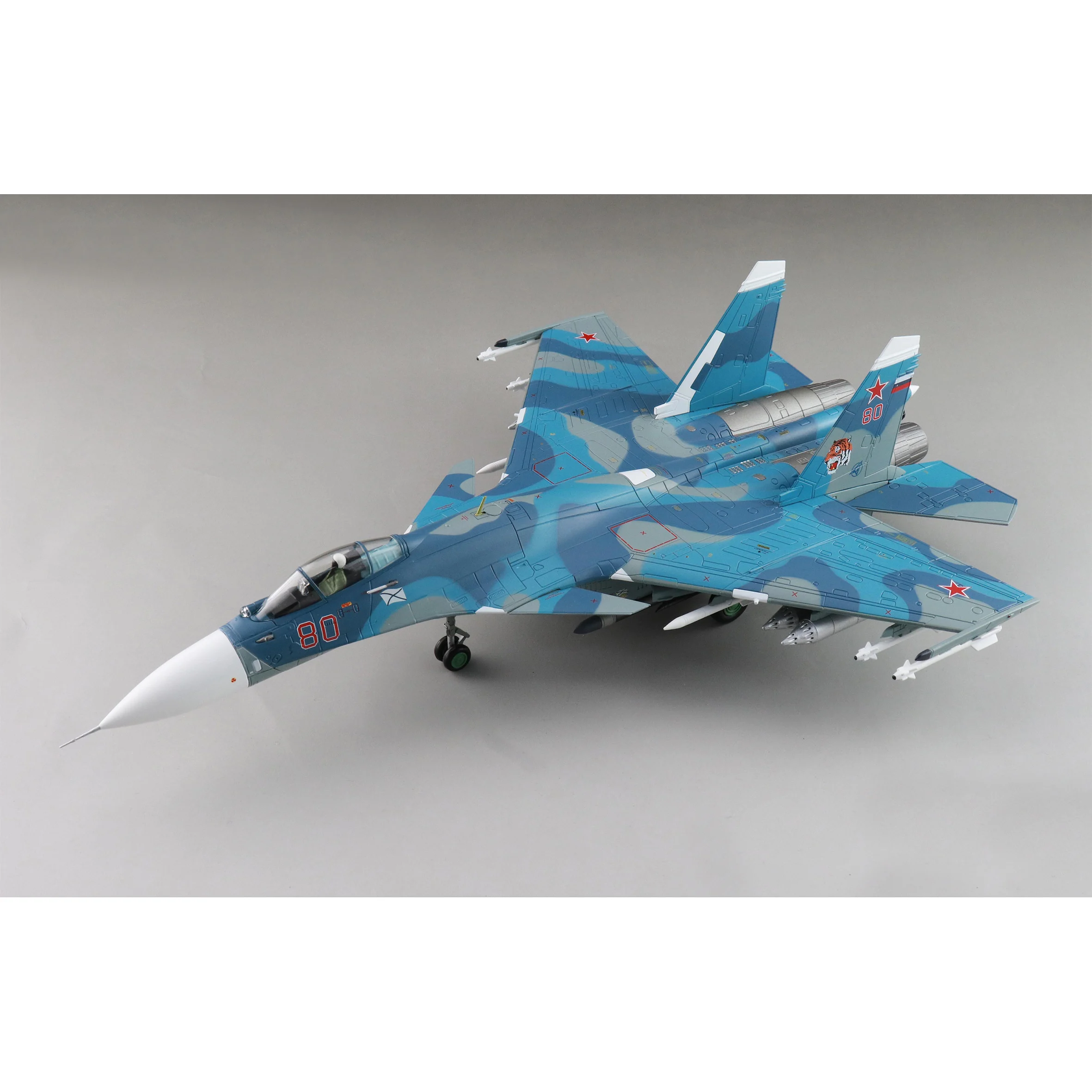 Experience the artistry and craftsmanship of this meticulously detailed 1/72 scale model of the Russian Su-33 fighter aircraft, Bort 80 from the prestigious 279th shipborne Fighter Aviation Regiment of the Russian Navy. This stunning representation, embodying the design of 2005, showcases a striking light blue body adorned with intricate blue and gray camouflage patterns. The sleek profile, with its pointed nose and a slightly transparent cockpit revealing a pilot figure, invites you to admire every angle. Constructed from durable alloy with plastic accents, this model offers both aesthetic pleasure and lasting quality, making it a perfect addition to your collection.