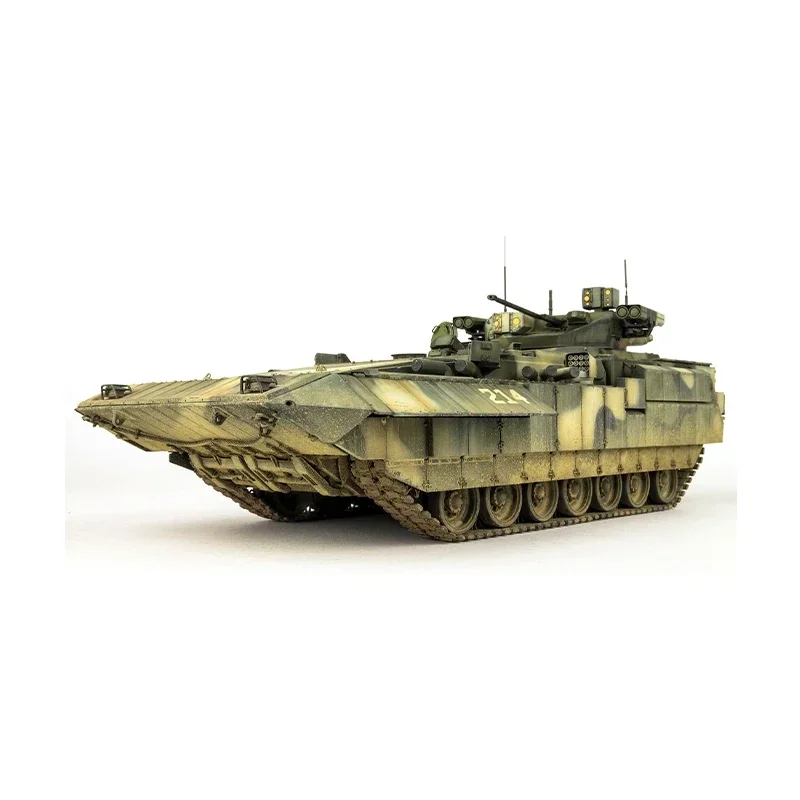 Experience the thrill of building your own detailed replica of the Russian T-15 Armata fire support vehicle with this highly realistic 1/35 scale plastic assembly kit. Designed for adult enthusiasts and collectors, this model allows you to craft an intricate battlefield vehicle featuring authentic camouflage patterns in shades of green, beige, and black. The weathered finish realistically replicates dirt, wear, and operational grime, providing a rugged, battle-worn look. With fine details such as detailed suspension, tracks, control panels, and antennae, this kit offers an immersive building experience. Perfect for strategic modeling, it transforms your space into a miniature battlefield, showcasing the operational complexity and tactical design of modern armored vehicles.
