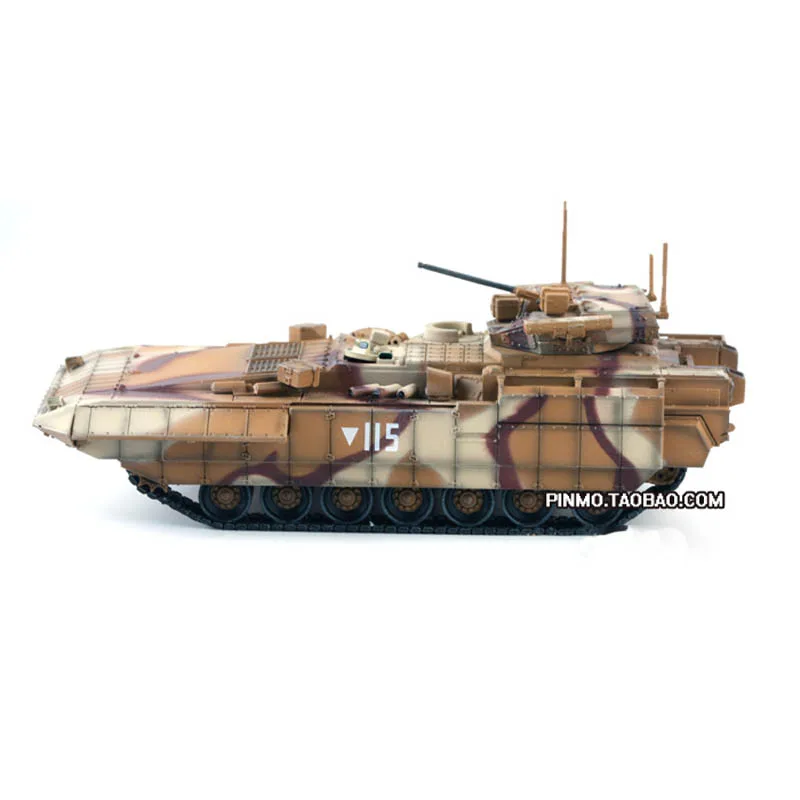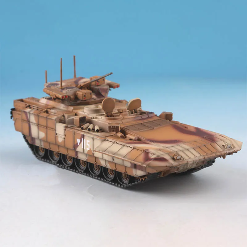 Bring your collection to life with this highly detailed 1/72 scale model of the Russian T-15 T15 Apmata Heavy Infantry Fighting Vehicle. Crafted from durable ABS plastic, this finished display piece features an intricate, rugged design with textured surfaces, layered paneling, a long slender barrel on the turret, and a striking desert camouflage pattern with irregular tan, brown, and reddish-brown patches. Measuring approximately 1:72 scale, it celebrates military craftsmanship with realistic tracks, hatches, antennae, and sensor details. Designed for display and collection, this fragile model is perfect for enthusiasts aged 14 and older, offering a vivid representation of modern armored vehicles.