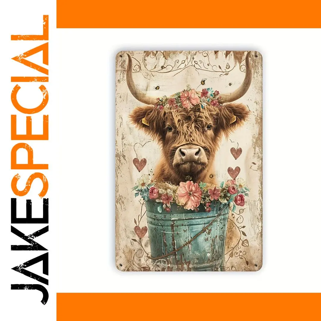 Transform your space with this charming rustic Highland cow metal tin sign, bringing the warmth of countryside decor into your home or outdoor area. Crafted from durable aluminum, this vintage-inspired piece features a beautifully detailed illustration of a Highland cow amid a vibrant floral crown. The weathered beige background enhances its rustic appeal, while decorative elements like hearts and vine motifs add playful charm. Available in three sizes—12×8″, 12×16″, and 5.6×8″—each option is designed for versatility and ease of mounting, thanks to four pre-drilled holes and smooth edges. Whether you hang it in your farmhouse kitchen, garden, or man cave, this sign effortlessly combines countryside elegance with playful floral accents for a warm, inviting atmosphere.