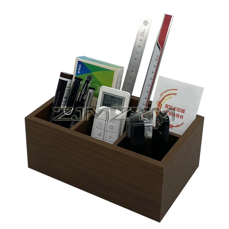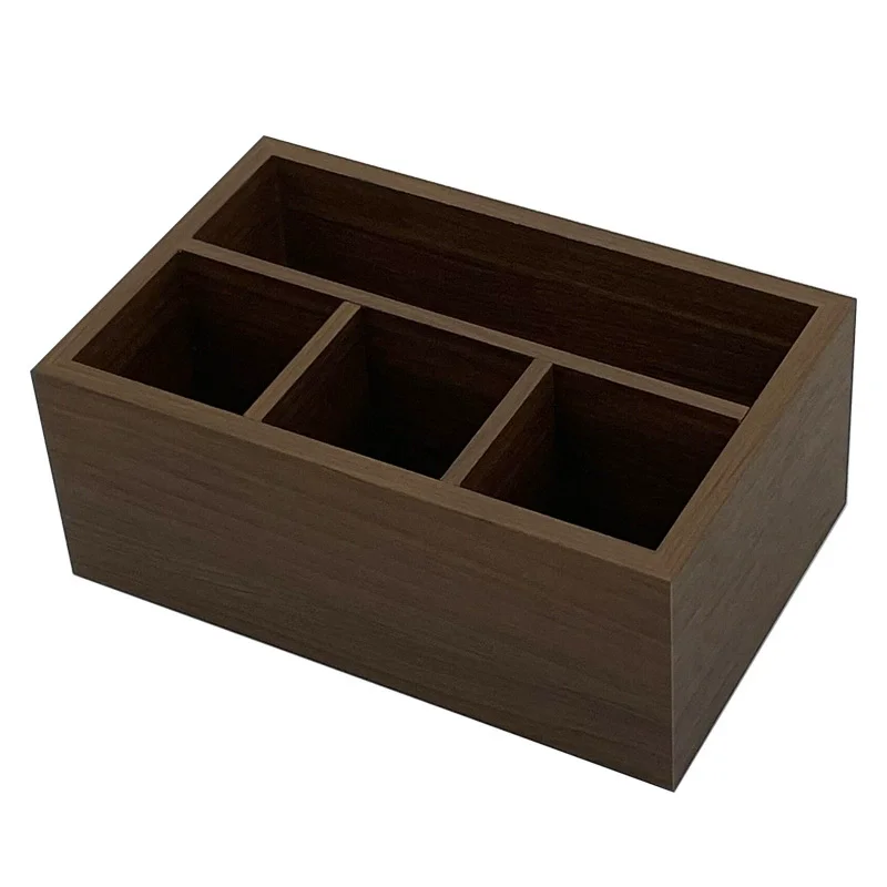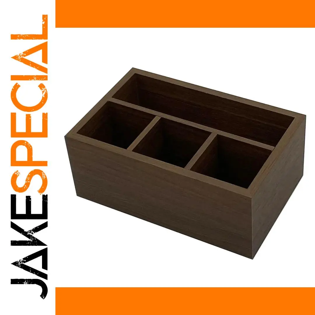 Enhance your workspace with this beautifully crafted wooden storage box, ideal for organizing small desk items and remote controls. Measuring approximately 12 x 10 x 6 centimeters, it features a smooth, medium-tone finish that highlights natural wood grain patterns, adding a touch of rustic charm to any office or home. The minimalist design with clean, straight edges and precise joints offers both durability and style. Its open-top compartments include one large back section and three smaller, equally-sized front sections, making it easy to access pens, pencils, remote controls, or other essentials. Designed to blend functionality with natural aesthetics, this versatile storage solution simplifies clutter and elevates your environment. Experience a more organized and charming space daily.