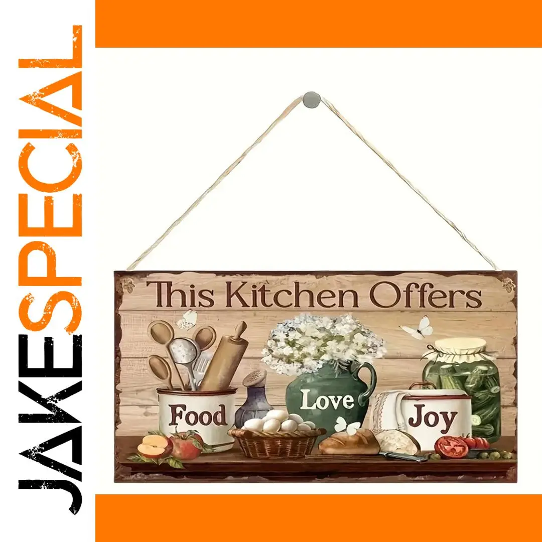 Enhance your kitchen ambiance with this rustic wooden wall decor sign featuring the heartfelt message, “This Kitchen Offers Food, Love, Joy.” Crafted from quality wood with classic styling, this rectangular hanging plaque showcases charming cooking and floral illustrations that bring warmth and personality to any space. Personalized to suit your decor, it’s the perfect addition for creating a cozy, inviting atmosphere. Easy to hang and designed for adult collectors, this piece transforms ordinary walls into a welcoming focal point. Bring a touch of rustic charm and meaningful message to your kitchen today, and envision how much it will brighten your home environment.