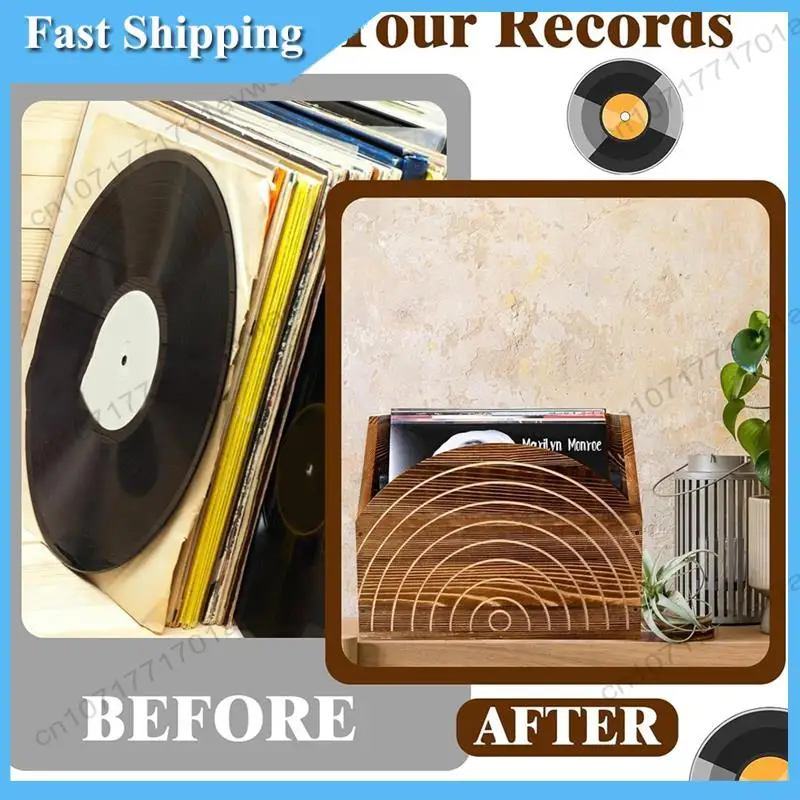Step into a world where your favorite vinyl records are both beautifully displayed and effortlessly organized. This high-quality wooden holder isn’t just storage; it’s a statement piece that reflects your appreciation for art and music. Imagine arranging your albums in this rustic yet stylish holder, creating an inviting environment for yourself or guests. Its sturdy construction ensures your collection remains safe and accessible while adding an artisanal touch to your decor. Don't miss the chance to make this versatile, charming record holder part of your home or workspace today. Your music deserves the perfect home!