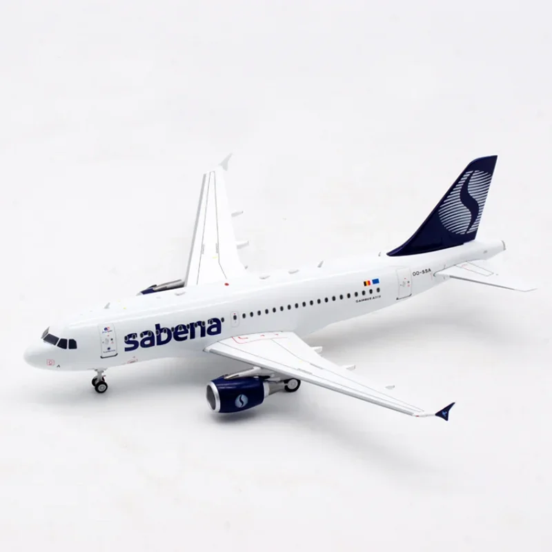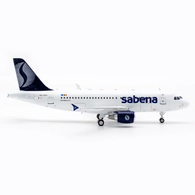 Imagine adding a touch of aviation elegance to your collection with this highly detailed Sabena Airlines Airbus A319 diecast model. Crafted with precise craftsmanship, this miniature aircraft showcases a sleek white fuselage with bold navy blue lettering spelling “sabena.” The vertical tail fin features a dark blue background adorned with a white swooping logo, mirroring the airline’s iconic livery. The model captures realistic details, including tiny, painted windows, doors, winglet features, and engine nacelles matching the navy blue branding. Its solid metal construction highlights fine panel lines and wing details, making it an ideal decorative piece for display on desks, shelves, or in showcases. This model invites aviation enthusiasts to relive the elegance of the Airbus A319 in a compact form, perfect for collectors and fans alike.