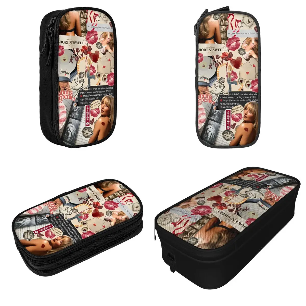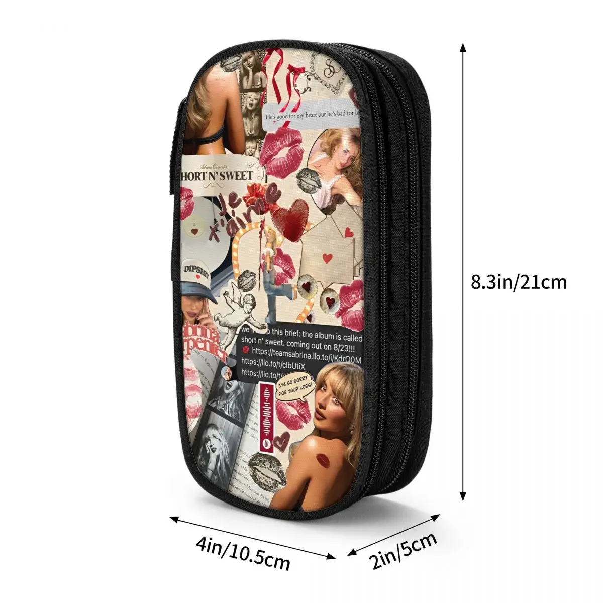 Introducing the Sabrina Carpenter Pencil Case, a stylish and functional accessory for students. This leather pencil case features a structured rectangular shape with rounded edges and a zippered closure, ensuring durability and ample capacity for all your stationery needs. The vibrant exterior showcases a collage of 90s music themes, with playful graphics and whimsical phrases that add a fun touch. Available in Blue, Black, and Pink, it’s perfect for schools and offices. Measuring one size fits all, this pencil case will keep your pens and pencils organized and easily accessible, making it an essential tool for your educational journey.
