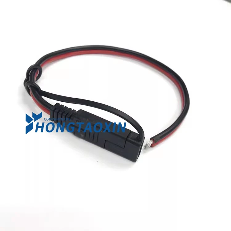 Ensure reliable power connections with this high-quality SAE automotive power wire featuring a 14 AWG pure copper conductor, available in 0.3m, 0.5m, and 1m lengths. It includes a single-ended cylindrical car bullet plug connector with a protective dust cap, designed for durability and corrosion resistance. The sleek black wire, insulated with vibrant red, offers flexibility and strength for automotive environments. The robust metallic terminal inside the connector guarantees secure electrical contact, while the black plastic dust cap prevents dust and debris ingress when not in use. Ideal for automotive applications, this CE-certified power cable combines functionality with a professional industrial aesthetic.