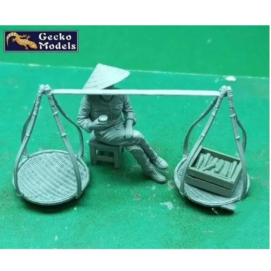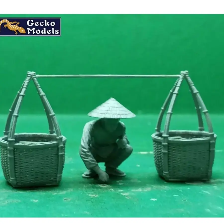Immerse yourself in a nostalgic 1/35 scale miniature scene of a 1960s-70s Saigon street market with this highly detailed plastic model set. Featuring realistic figures dressed in casual, earthy-toned clothing, and authentic accessories like wicker baskets filled with colorful produce, this scene captures a lively moment of daily life. The figures are in natural postures, with textured fabrics and intricate weaving patterns, set upon a vibrant green marketplace surface scattered with tiny debris for added realism. Designed for collectors and hobbyists aged 14 and above, the set offers cultural richness and authentic charm for your diorama or display.