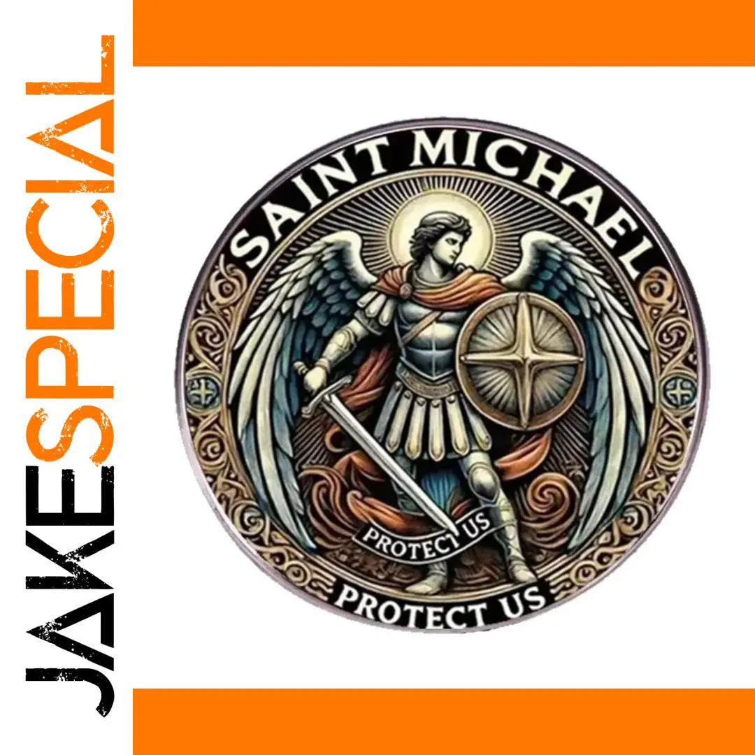- Features an intricate depiction of Saint Michael the Archangel, embodying heroism, protection, and spiritual strength.
