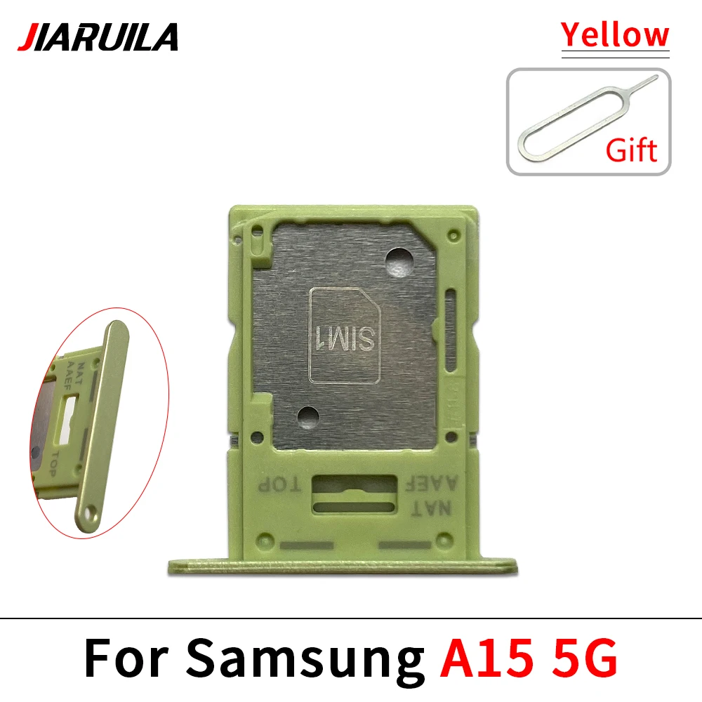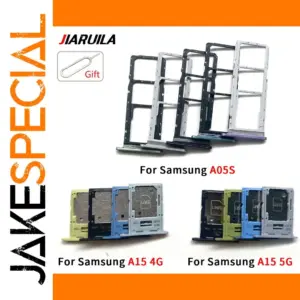 Enhance your Samsung device with this high-quality dual SIM card slot tray holder and socket compatible with Samsung A05S and A15 models supporting 4G and 5G networks. Available in a variety of sleek colors, including black, dark blue, green, light blue, purple, silver, white, yellow, and sky blue, this replacement component features a polished, minimalist design with precisely cut openings and mounting holes for seamless integration. The set includes a durable tray and secure pin, ensuring reliable SIM card placement and easy installation. Crafted without chemical concerns, it offers a practical, understated aesthetic to keep your device functioning smoothly and looking sharp.