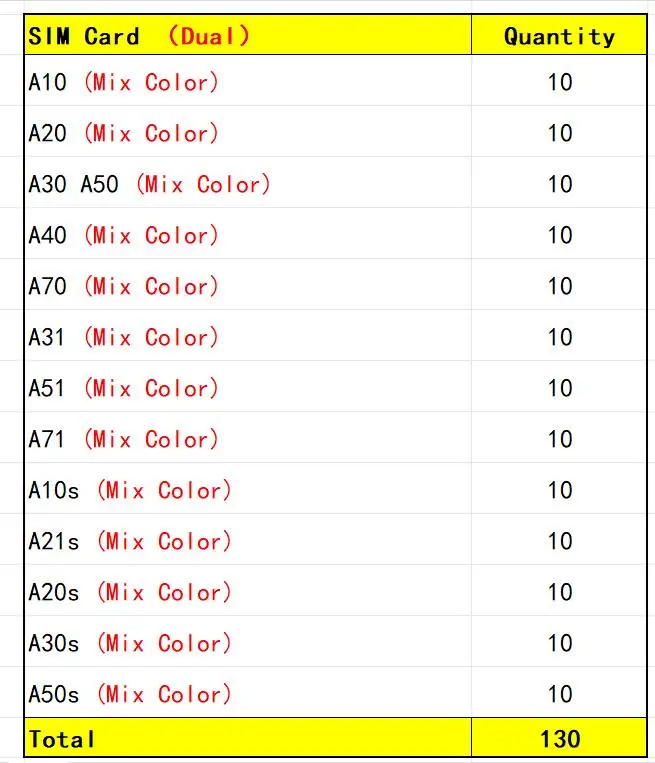 Enjoy the convenience and flexibility of switching SIM cards effortlessly with this set of 50 dual SIM card tray adapters, designed for various Samsung models including A10, A20, A30, and more. Crafted with precision, these adapters feature a sleek, rectangular shape with rounded corners and a matte finish surface that exudes modern simplicity. Available in vibrant colors such as red, blue, black, gold, gray, and white, they not only enhance utility but also add a touch of style to your device. Whether you need to expand your phone’s functionality or replace a lost tray, this large collection ensures you'll always have a suitable option ready. Installing is quick and easy, making managing multiple SIM cards more seamless than ever before.