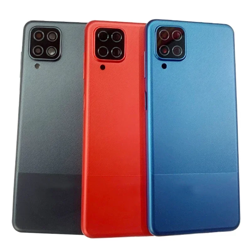 Enhance your Samsung A12 (A125F) with this sleek replacement rear battery cover. Crafted from durable plastic, it offers a perfect fit with a modern design that combines functionality and style. Available in eye-catching red with lens, elegant blue with lens, and classic black with lens options, these covers feature a textured top section and a smooth, matte finish that feels comfortable in your hand. The precise camera module cutout ensures seamless integration with your device’s camera lenses, providing protection while maintaining a clean appearance. The inclusion of a camera lens repair component adds value, ensuring your phone’s camera remains fully operational. Easy to install, this cover restores your phone’s look while offering reliable protection against daily wear and tear.