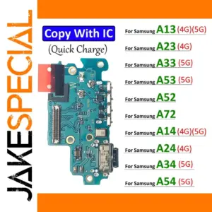 Enhance your Samsung device with this precise USB charging port, dock, and charger connector board, compatible with models including A13, A23, A33, A53, A52, A72, A14, A24, A34, and A54, supporting both 4G and 5G connectivity. Featuring a micro flex cable for seamless internal connection and supporting quick charging, this replacement part incorporates IC version B for optimal performance. Designed in a sleek bar shape with a vibrant blue finish, it includes multiple variant options such as A13 4G/5G, A14 4G/5G, A23 4G, A24 4G, A33 5G, A34 5G, A52, A53 5G, A54 5G, and A72, A72F, ensuring a perfect fit and reliable power delivery to keep your device functioning at its best.