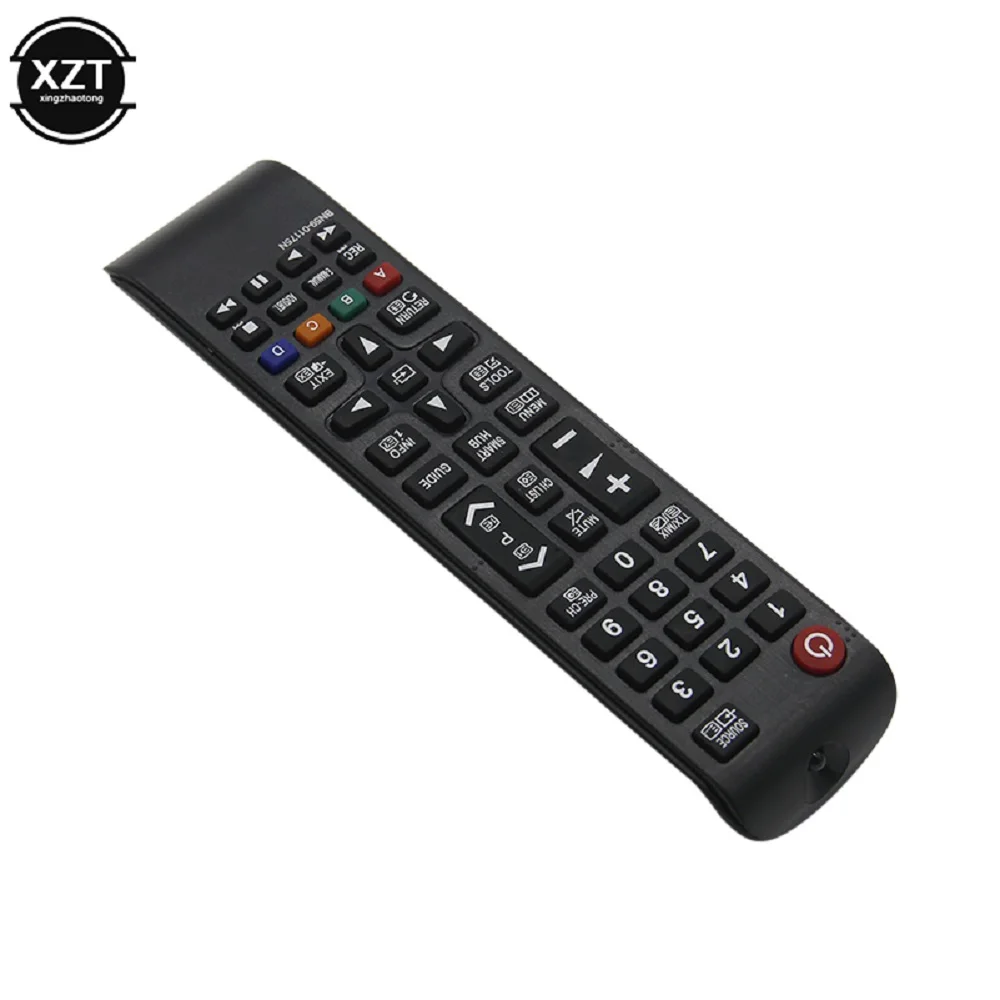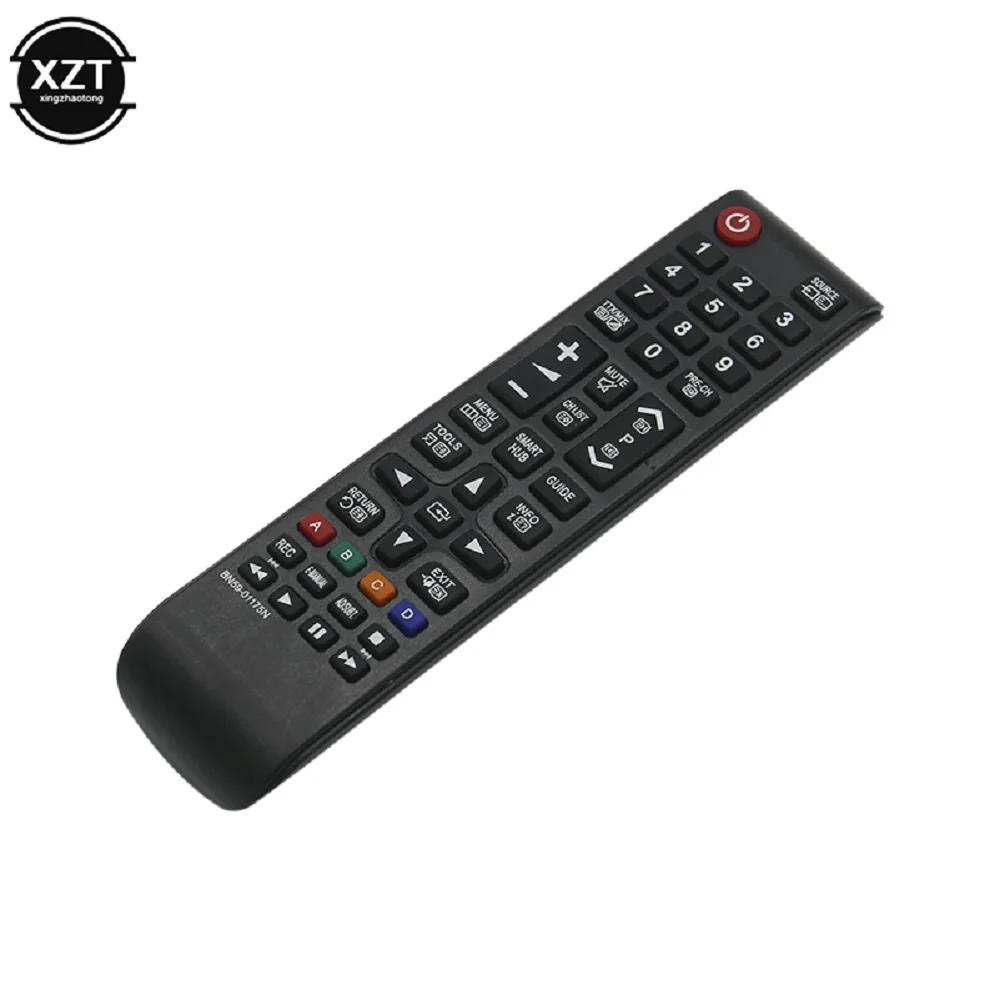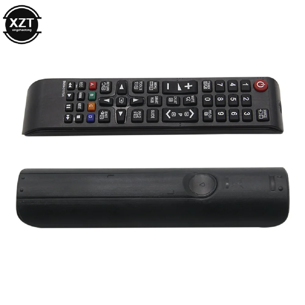 Enhance your Samsung Smart TV experience with the BN59-01175N remote control, designed for models including UE40H6470SSXZG, UA85JU7000W, UA88JS9500W, and UE55HU7200U. Crafted with a sleek, elongated, matte black exterior, this remote features a well-organized layout of buttons, including a prominent red power button, a numeric keypad, and media controls. Brightly colored buttons in red, green, yellow, and blue add vibrant accents, making navigation intuitive and stylish. Operable via IR wireless communication, it offers reliable performance and compatibility across various Samsung Smart TVs, delivering a streamlined, modern aesthetic that blends seamlessly into your home entertainment setup.