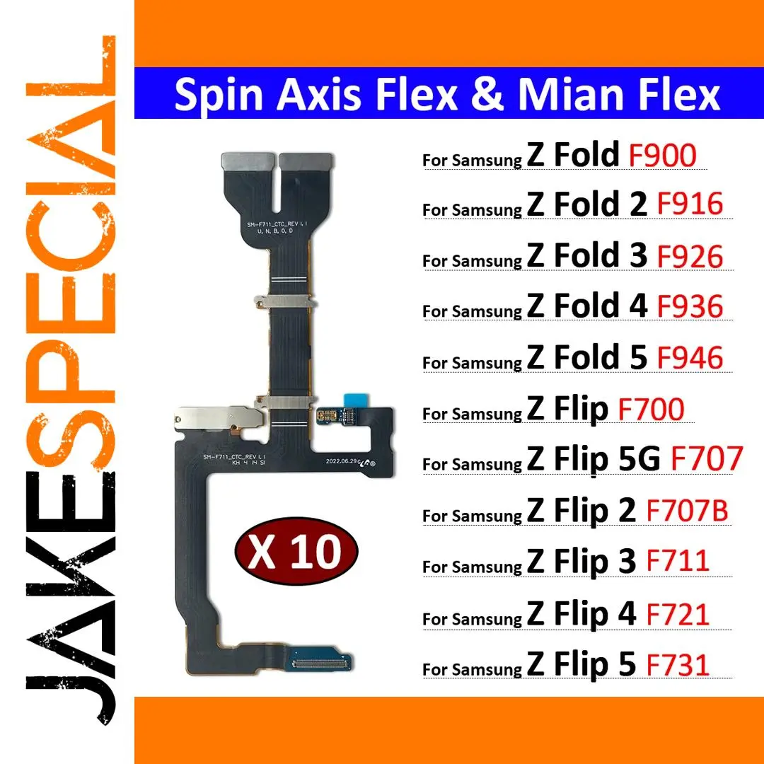 - Set of 10 meticulously tested flex cables compatible with Samsung Z Fold and Z Flip series models, ensuring reliable fit for models F900, F916, F926, F936, F946, F956, F707, F707B, F711, F721, and F731.