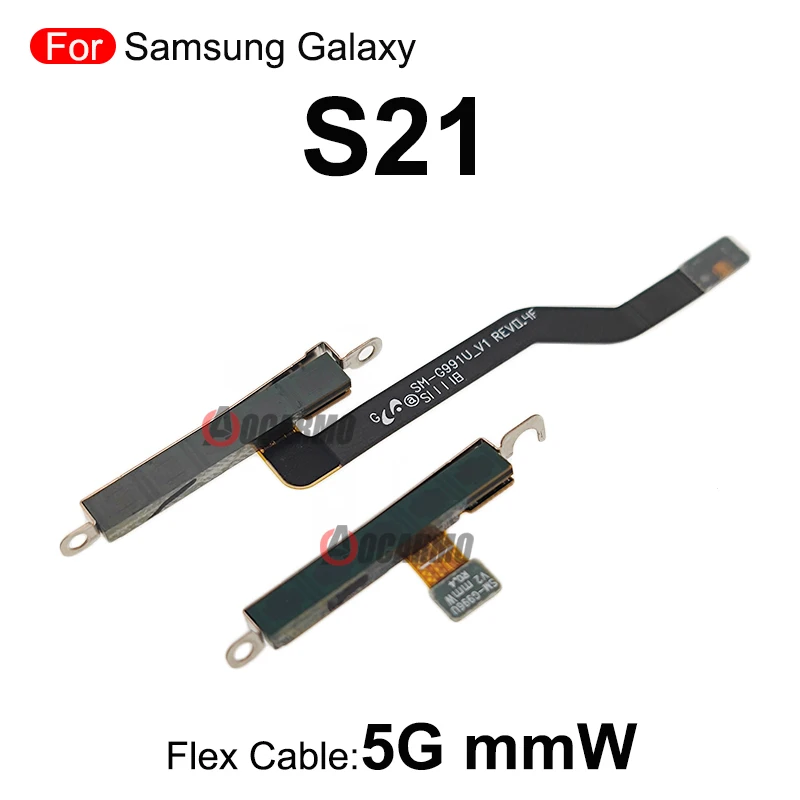 - The module features a flexible, flat cable measuring approximately 25mm wide with a semi-transparent, light-colored substrate, ensuring easy installation in compatible Samsung Galaxy models for optimal signal strength.