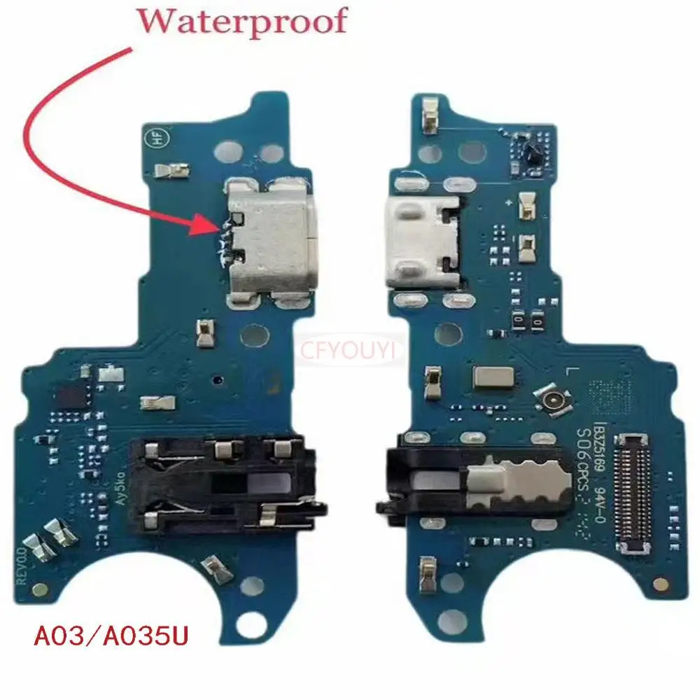 Enhance your Samsung Galaxy device with this high-quality USB charge connector dock with microphone flex cable, compatible with models A03, A035F, A035U, A03 Core, A032F, A03S, and A037U. Designed with a sleek, compact bar style for seamless integration, it features a durable black surface with precisely placed surface-mounted components, including a silver USB port for reliable charging and data transfer. The connector is certified with CE and available in various model-specific color options, ensuring a perfect match for your device. Easy to install, this tested part guarantees efficient operation and long-lasting performance, restoring your phone’s charging and microphone functionality.