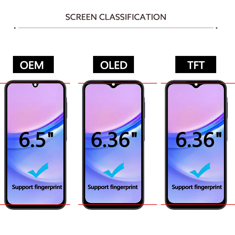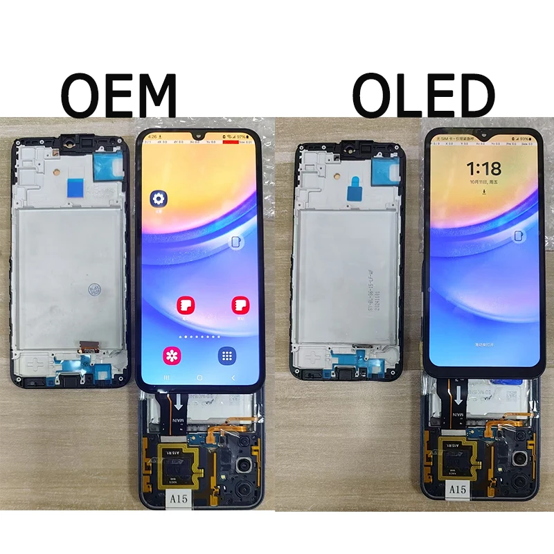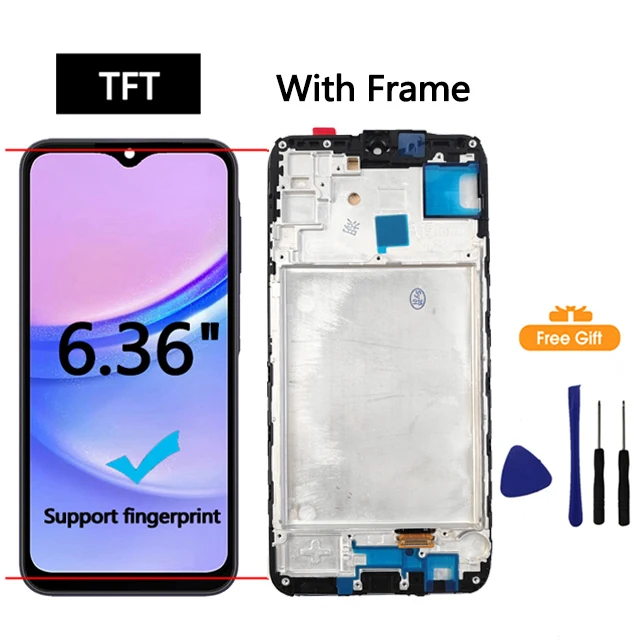 Imagine revitalizing your Samsung Galaxy A15 with a stunning, high-quality AMOLED LCD and touch screen digitizer assembly. Designed for both 4G and 5G models, this replacement offers vibrant visuals and a smooth touch experience. The sleek, modern display features a glossy surface and a minimalist black border with a small top notch for the front camera, blending style and functionality. Available in various sizes and styles—including 6.36″ OLED (with or without frame), 6.5″ OEM with frame, and TFT options—this assembly fits multiple Samsung Galaxy A15 variants. Whether your screen has cracked or stopped responding, this product restores your device to a pristine condition, giving you confidence and peace of mind.