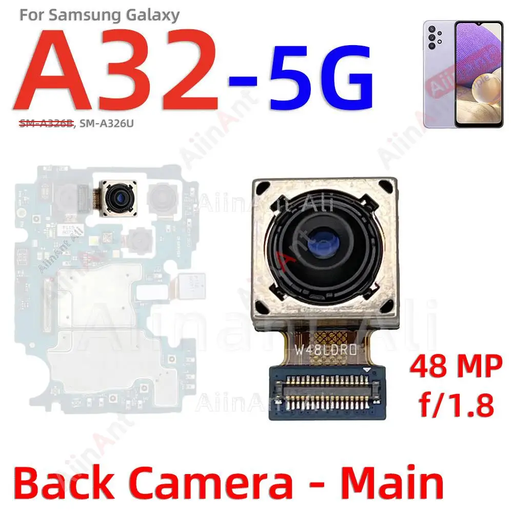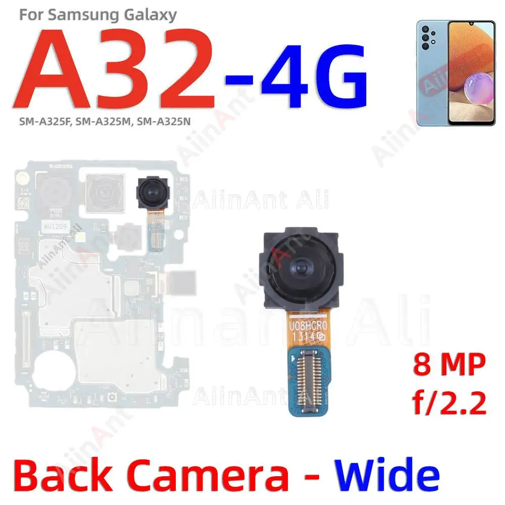 - This flex cable connects multiple camera modules including front, macro, depth, wide-angle, and rear main camera, restoring full photographic functionality for Galaxy A32 models.