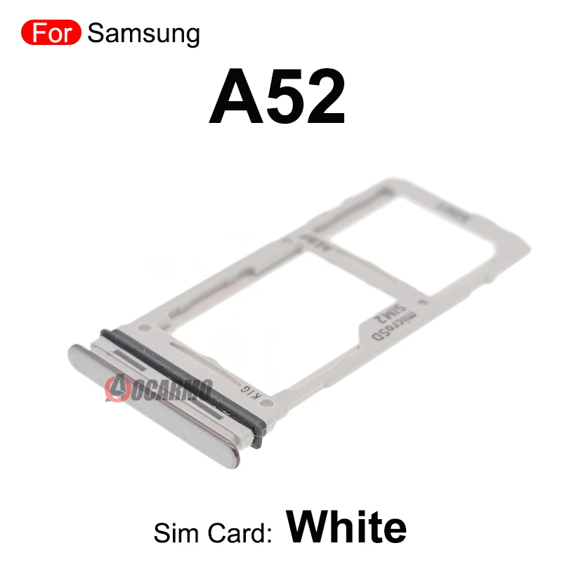 Replace your Samsung Galaxy A52 SIM card and microSD card tray effortlessly with this high-quality, original holder. Designed specifically for the Samsung A52, it ensures a perfect fit and reliable performance. Available in multiple colors—black, blue, purple, and white—this replacement part helps restore your device’s functionality quickly. Crafted with precision, it offers durable and authentic quality, giving you peace of mind with every use. Whether you’ve experienced a damaged slot or want a spare for repairs, this SIM card and microSD holder is the ideal solution for maintaining your Galaxy A52’s optimal performance.