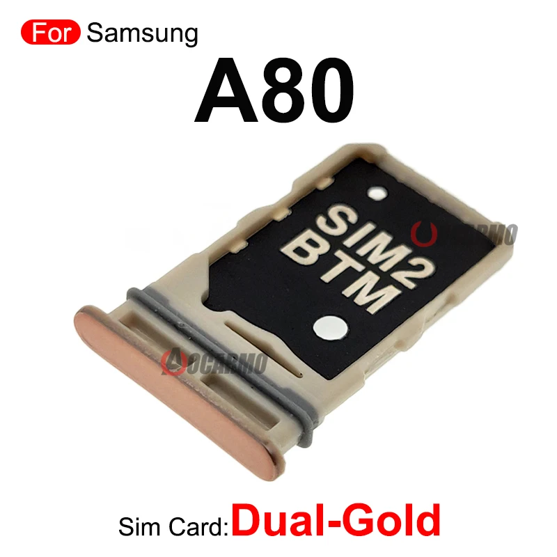 Experience seamless connectivity with this high-quality dual SIM card tray specifically designed for the Samsung Galaxy A80 SM-A805F. Crafted by AOCARMO, this original replacement part ensures perfect compatibility and reliable performance. Whether you're replacing a damaged tray or upgrading your device's functionality, this component allows you to easily insert two SIM cards and a MicroSD card in one convenient slot. Its precise fit ensures your Galaxy A80 functions as intended without any issues. Made from durable materials, this tray maintains the integrity of your phone's design while supporting your communication needs efficiently. Trust this genuine part to restore or enhance your device’s capabilities effortlessly.