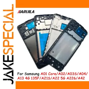 Enhance your Samsung Galaxy device with this durable replacement front housing bezel/frame, compatible with models including A01, A01 Core, A02, A02S, A03S, A04, A11, A12, A13 4G/5G, A14 4G/5G, A21S, and more. Crafted from high-quality plastic, it features a sleek, minimalist design with precise cutouts for buttons, cameras, and internal components, ensuring a perfect fit and seamless functionality. Available in various colors and models tailored to specific Galaxy variants, this front housing supports LCD display mounting and internal hardware protection. A reliable choice for repair or replacement to restore your device’s aesthetic and structural integrity.
