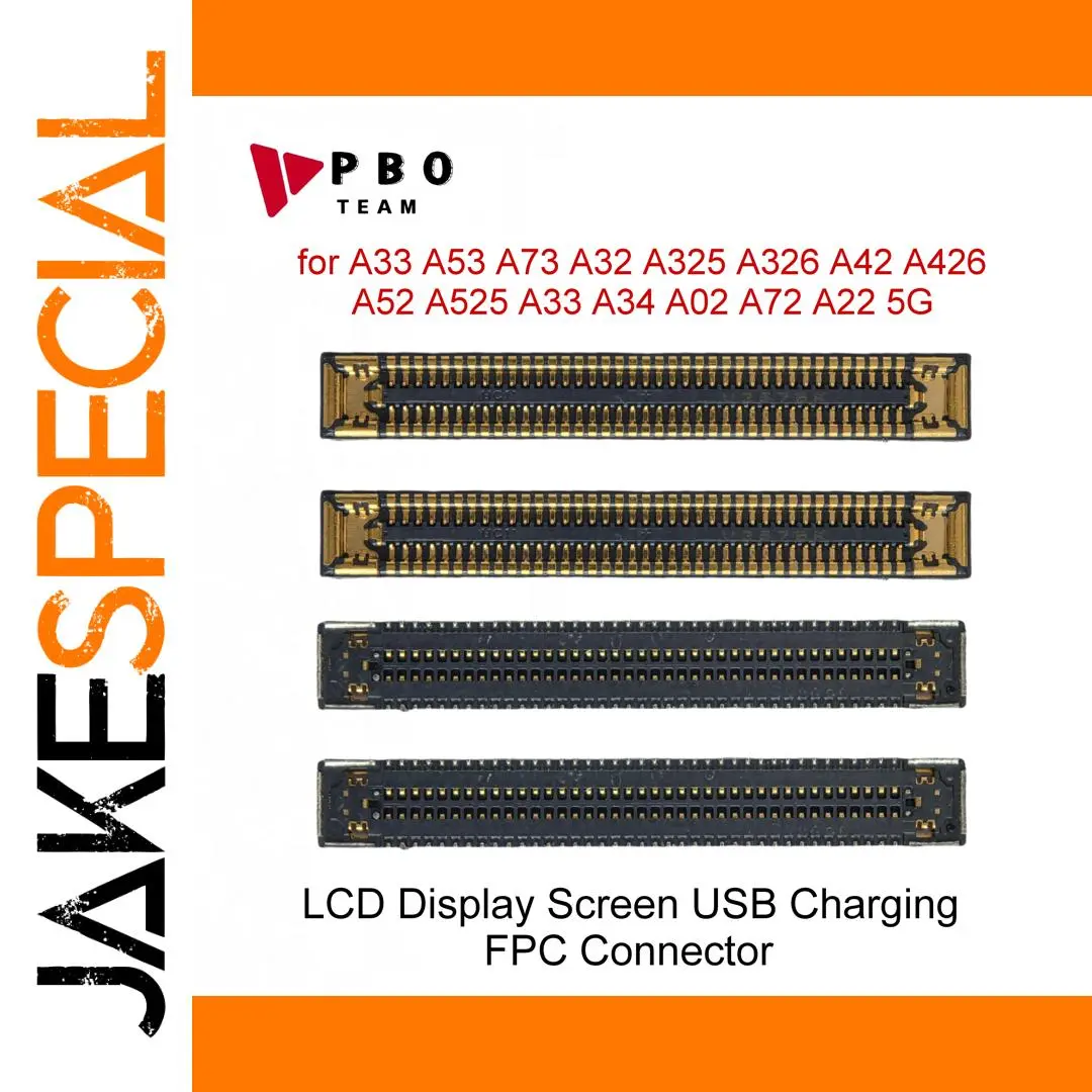 Experience seamless repairs and upgrades with this set of LCD display screens featuring high-quality USB charging FPC connectors, designed specifically for compatible Samsung Galaxy models. These components combine functionality and precision craftsmanship, offering reliable performance for your smartphone repair needs. Available in various quantities, these screens are perfect for professional technicians or dedicated enthusiasts working on models such as A32, A33, A34, A42, A52, A53, A73, and A326. Each display is engineered with attention to detail, highlighting the clean lines and minimalist design of the connectors, which feature a sleek rectangular form, matte black base, and gold-plated contact points. Easily integrate these flexible and durable components into your projects to restore or enhance your device's display and sensor functionalities.